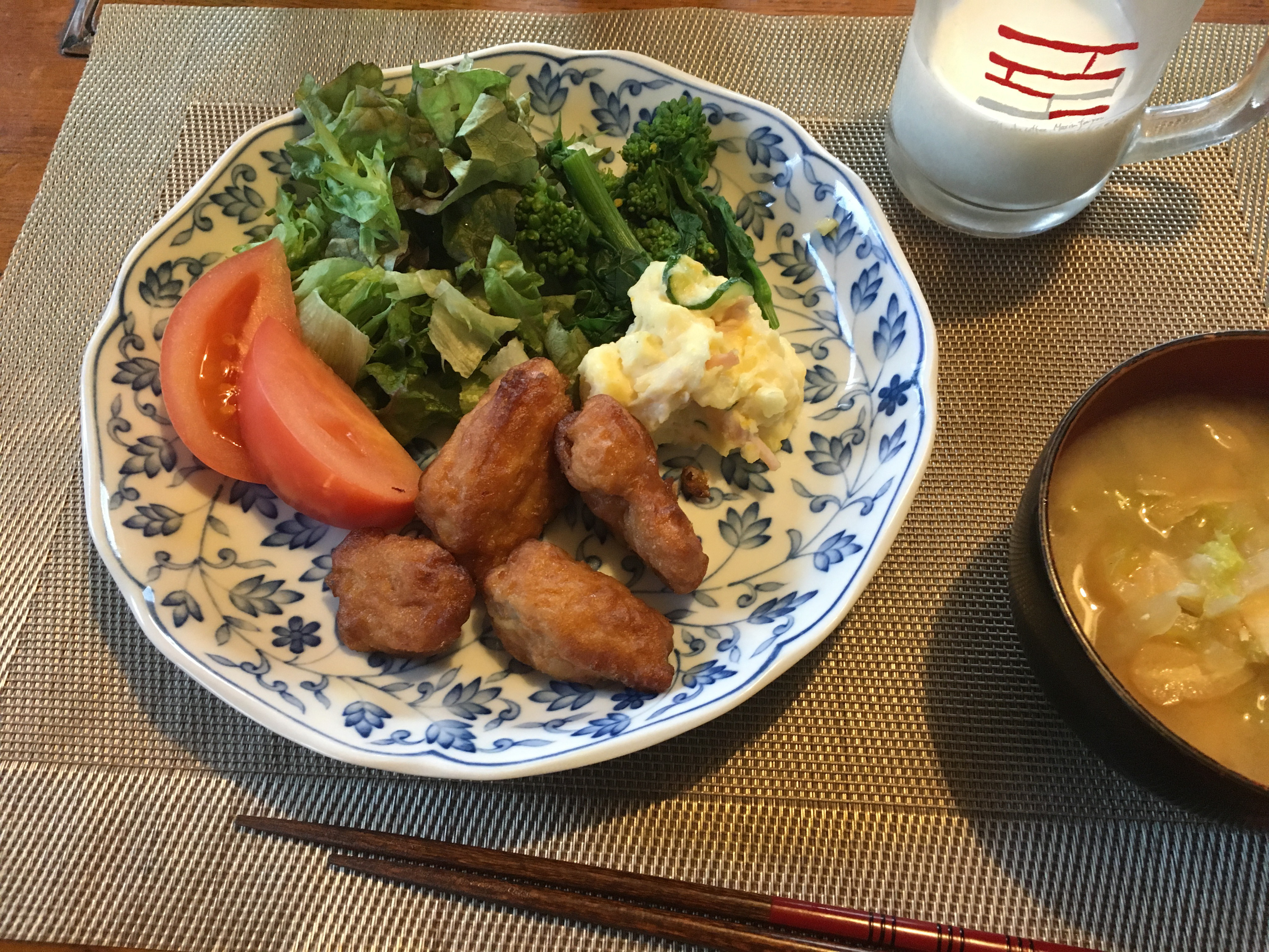 生野菜と白菜の味噌汁&飲むヨーグルト。
