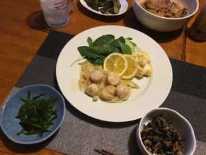 2020年2月10日blogyoko 休日は 土曜はユーフィットへ行ったあとは買い物。 まだまだ冷凍庫がいっぱいなので、ほんの 少しの野菜だけ。 夕食はホタテのソテー。 残っていた日本酒少々と赤ワイン1本。 のつもりでしたが、その後また日本酒を。 休日はお酒が止まりませ〜ん。