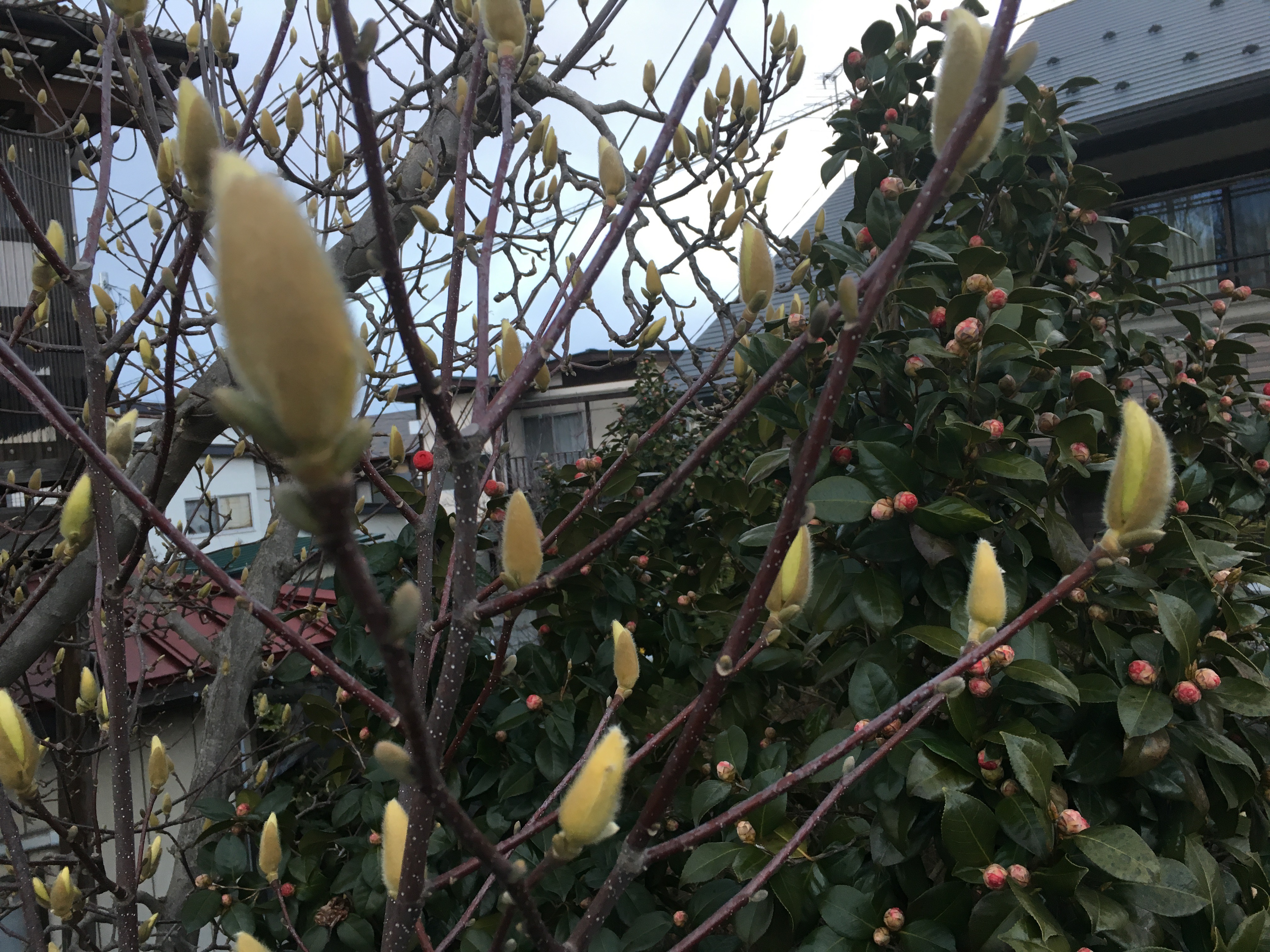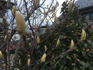 2020年3月23日blogyoko 散歩 晴れてきたし運動不足でもあるので小雨では あるものの3時頃から二人で散歩です。 花や蕾を眺めながらテクテクです。 晴れていれば、まだまだ明るのですが イマイチの天気なので暗くなってきました。 急ぎ自宅で〜す。