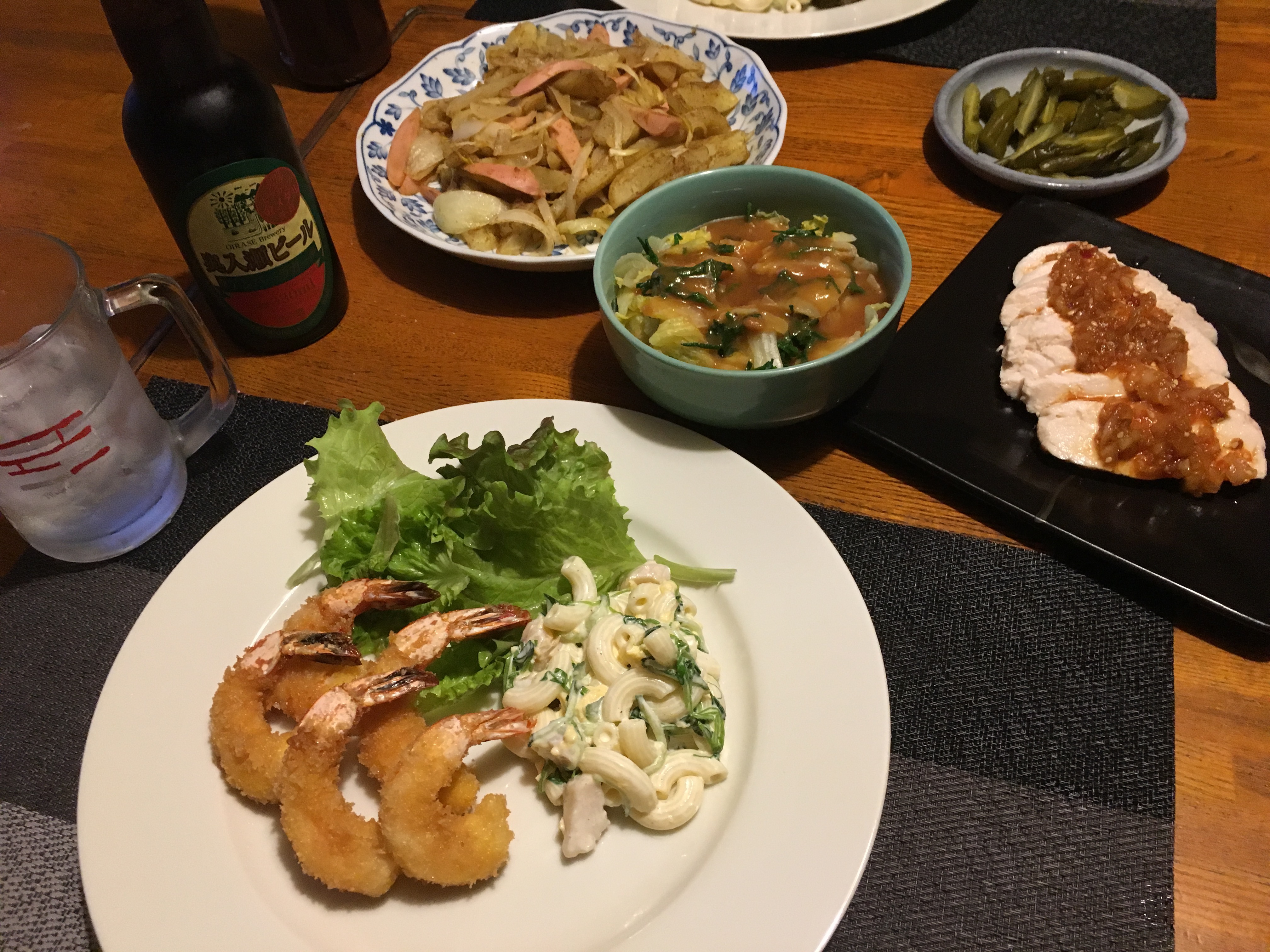 2020年3月16日blogyoko 早め 今週はとにかく冷凍庫の中の整理に心がけ 夕食は小さなエビが出てきたのでエビフライ。 白菜とあさつきの酢味噌和えとサラダチキン。 早めの夕食で就寝も早めで〜す。