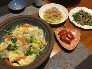 2020年3月5日blogyoko 野菜だけで 6時すぎのユーフィットへ。 ちょうど会員さんが切れたのでスタッフの Wさんと蛍光灯の取り替え。 新しいと館内が明るく感じます。 その後、Sさんと一緒にトレーニング。 帰宅して野菜たっぷりのタジン鍋。 タレは柚子胡椒でなく、あえて先日購入の ハラサの出番。 野菜だけでお腹いっぱいで〜す。