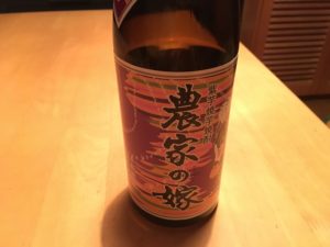 農家の嫁とは名前がすごいですね。 芋焼酎です。 宴会で残ったからと持たされたそうです。 忘れん坊でもお酒だけは忘れないで お持ち帰りで〜す。