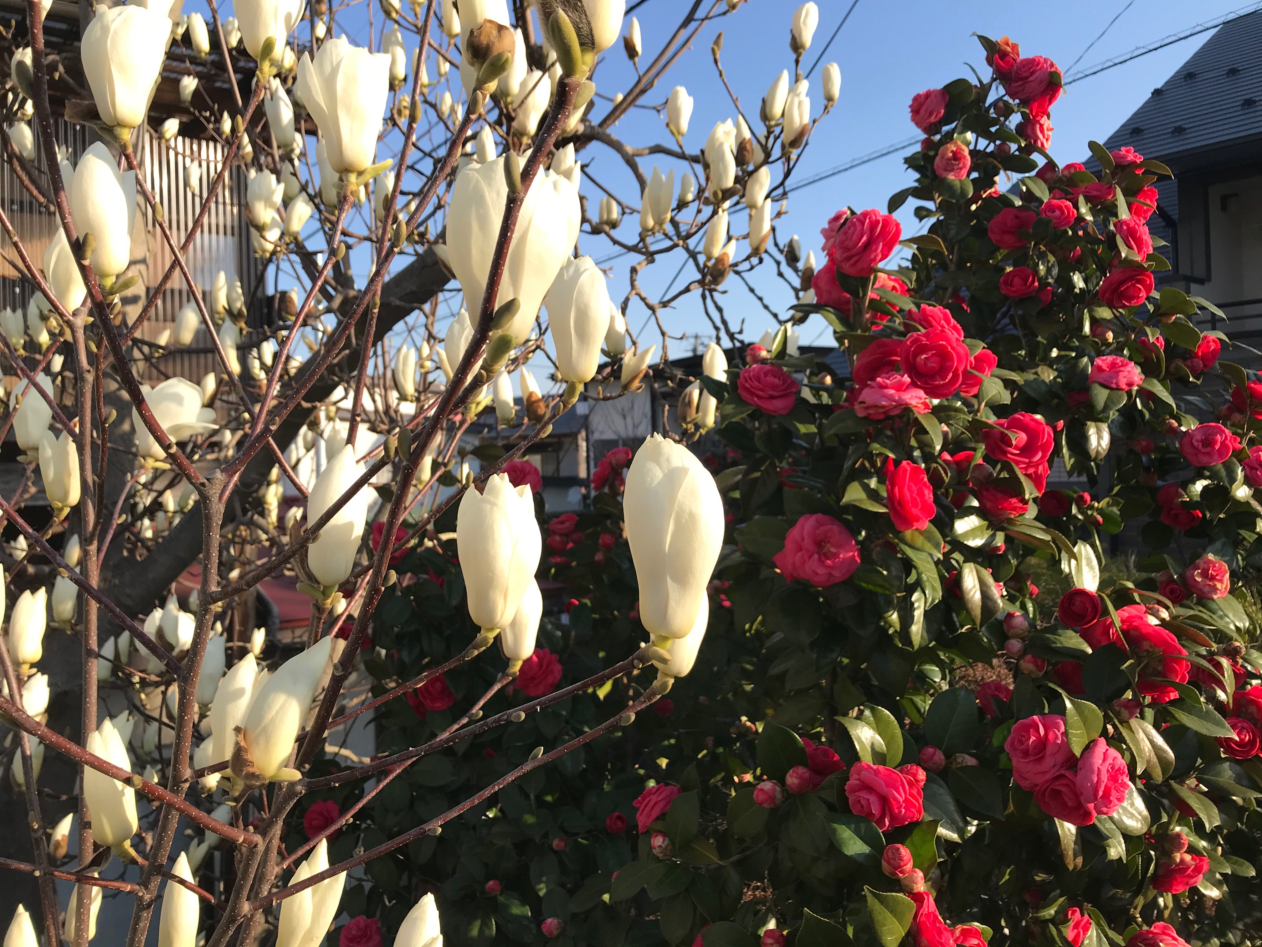 2020年4月3日blogyoko 気持ちも レンギョウも咲いています。 シダレサクラはもう少し先ですね。 1週間間は小さな蕾だったモクレンと椿。 桜ももうすぐ満開になりそうです。 気持ちも春真っ盛りでいたいですね。