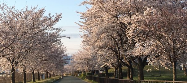 河原沿いの桜が満開に近いです。