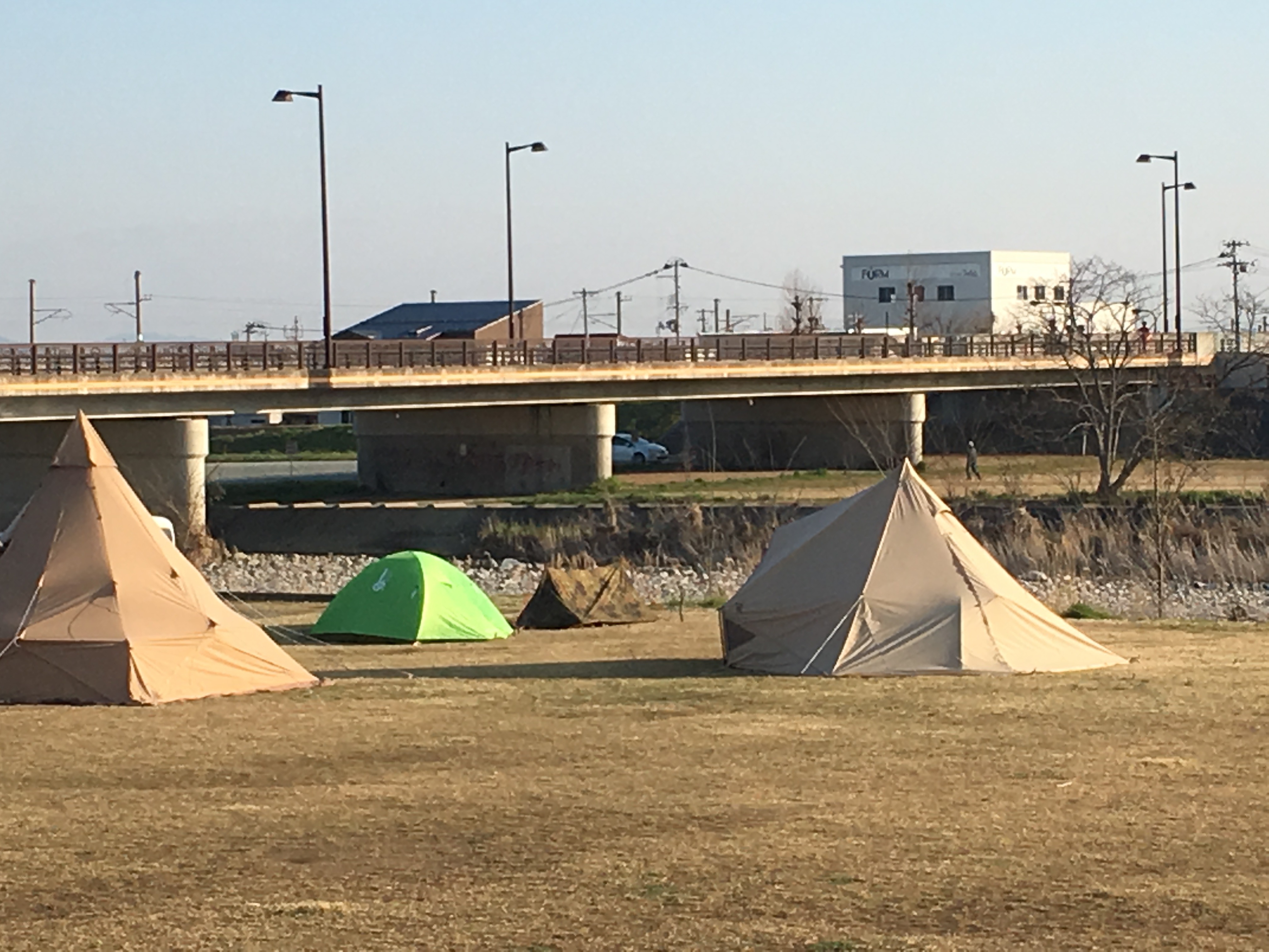 河原には本格的なテントが。