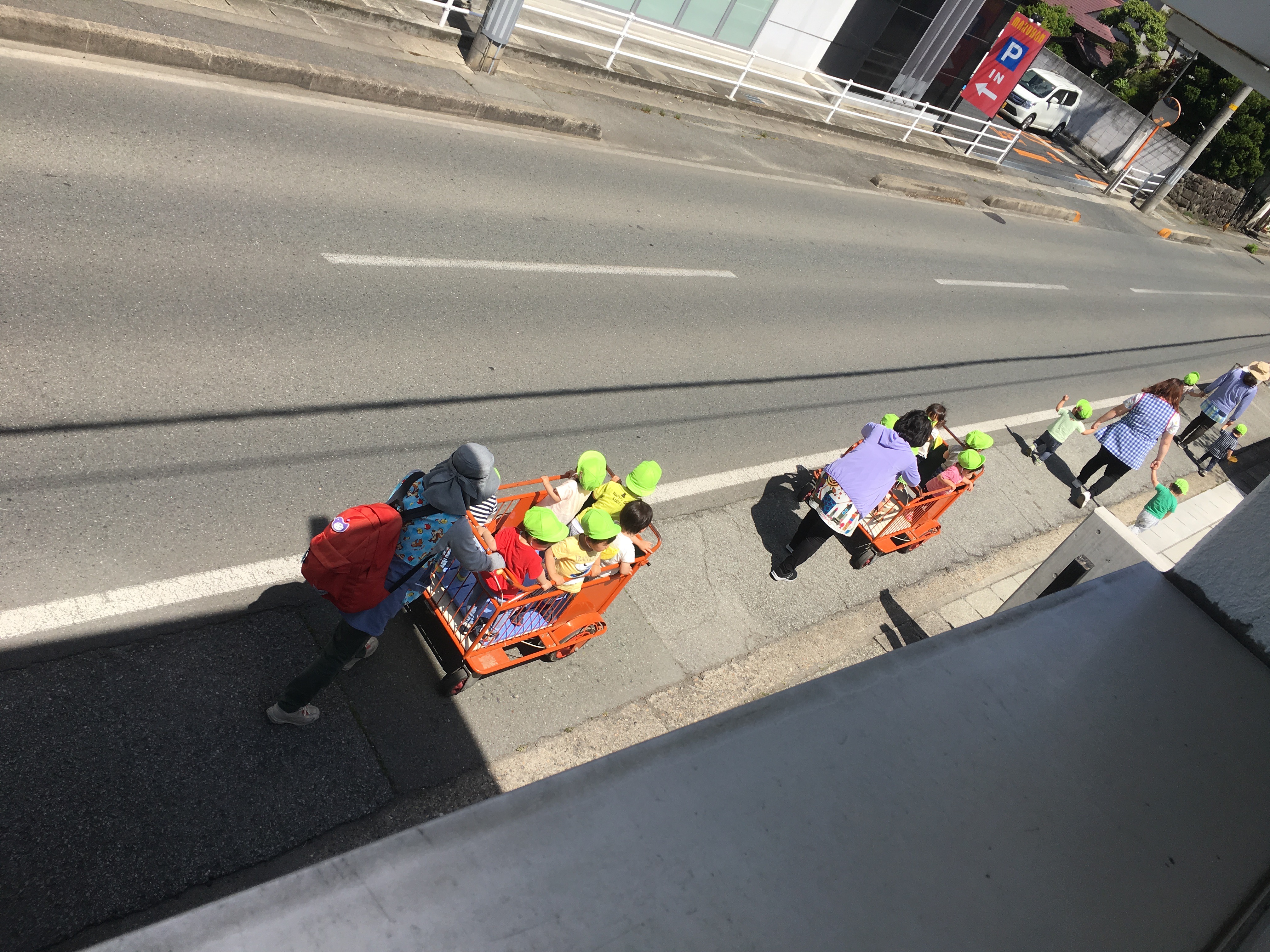 2020年5月15日blogyoko 園児達 いつもの園児達の散歩です。 このくらいの年齢だとあまりおしゃべりはなく 必ず一人ぐらいは泣いて先生におんぶ。 それも、また可愛いです。 そして、この後は少し大きい園児達。 とにかく賑やかで〜す。
