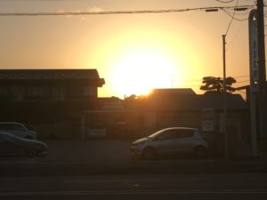 2020年5月12日blogyoko 昨夜も 昨日から営業開始になったユーフィットですが 午前中はまあまあの来館数でしたが、午後と夜は パラパラです。 昨夜もユーフィットから夕陽を見ながら6時で 閉館となりました。