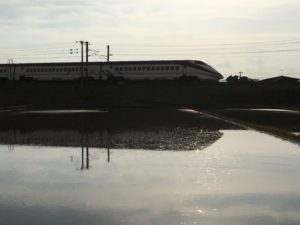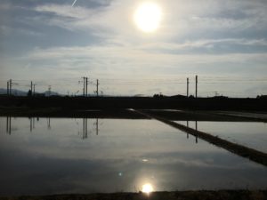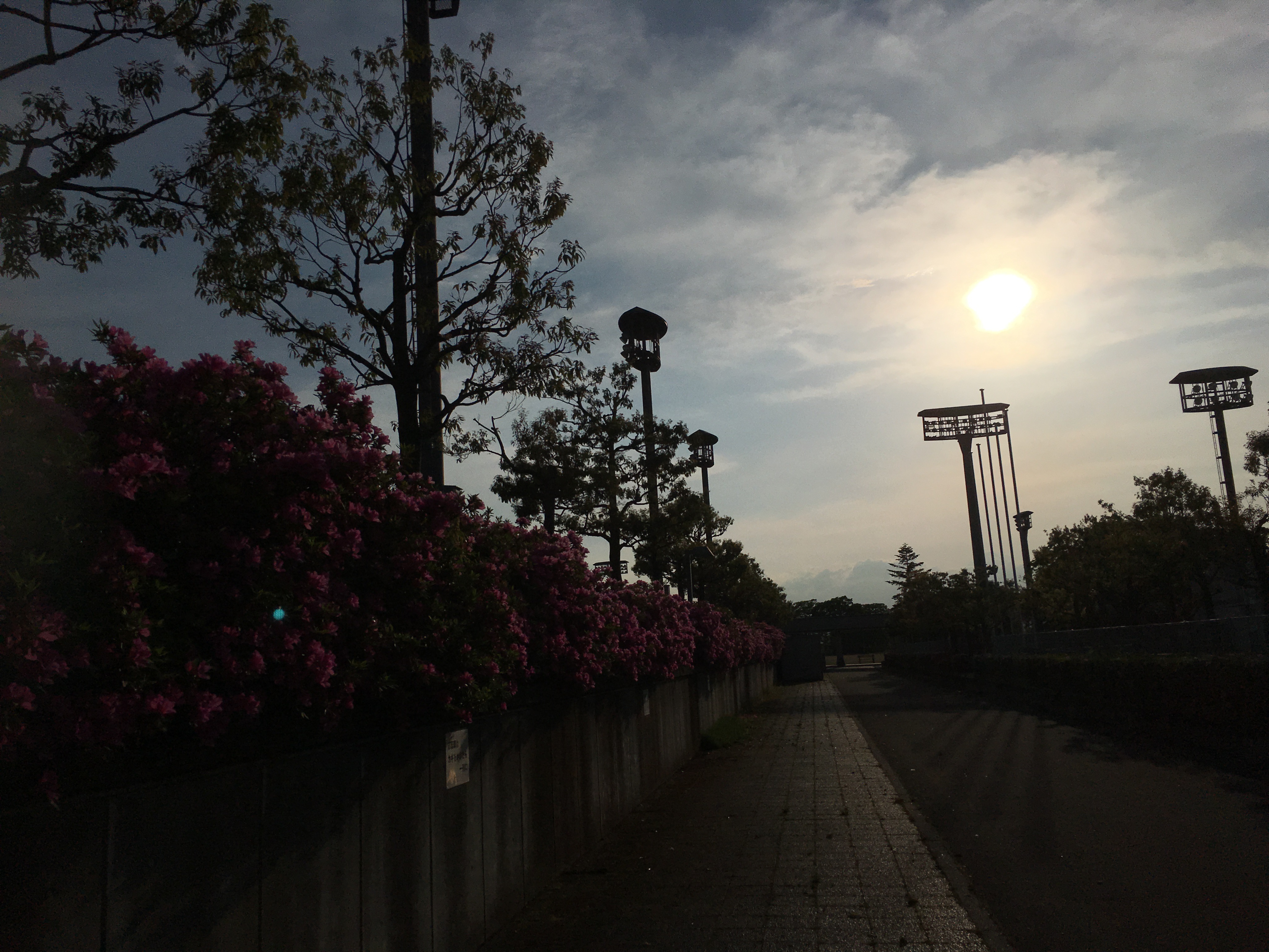 2020年5月25日blogyoko 2回目の散歩 畑作業が思ったより早く終わり、夕食まで 時間があるので日曜2回目の散歩です。 夕日が田んぼにも。 梅も随分大きくなってきていました。 スポセンの椅子の貼り紙。 コロナの影響でこの時期にガランとした スポセンはじめてで〜す。