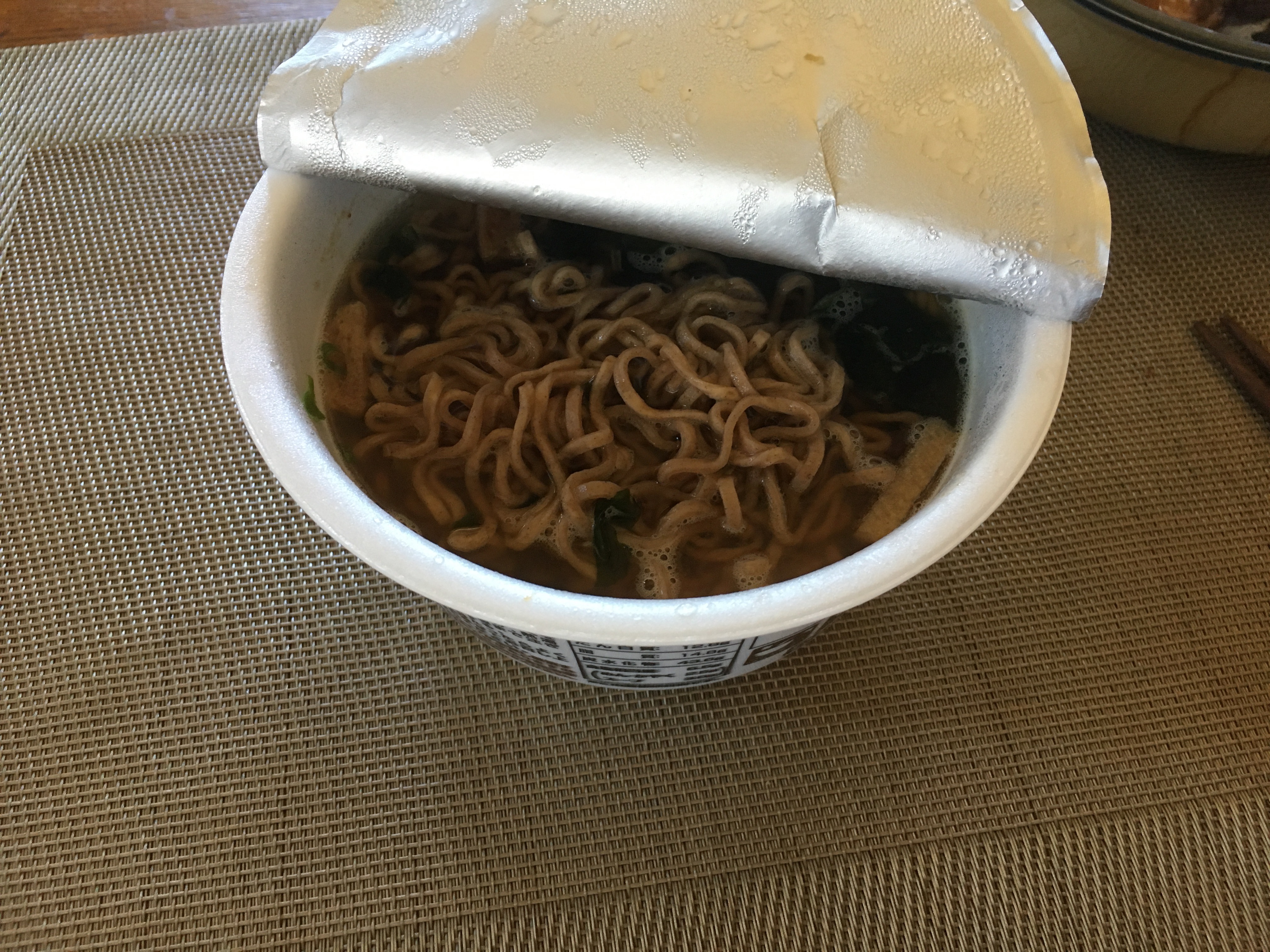 2020年6月22日blogyoko お弁当 午前中に私がユーフィットへ行っている間に 相棒、茂利多屋さんへ草刈りのお手伝い。 帰りに二人分のソースチキンカツ丼のお土産。 ちょうどお昼を過ぎたばかりなので、さっそく。 相棒、カツのカリカリが痛いようです。 せっかくのお弁当を前にカップ麺のお昼で〜す。