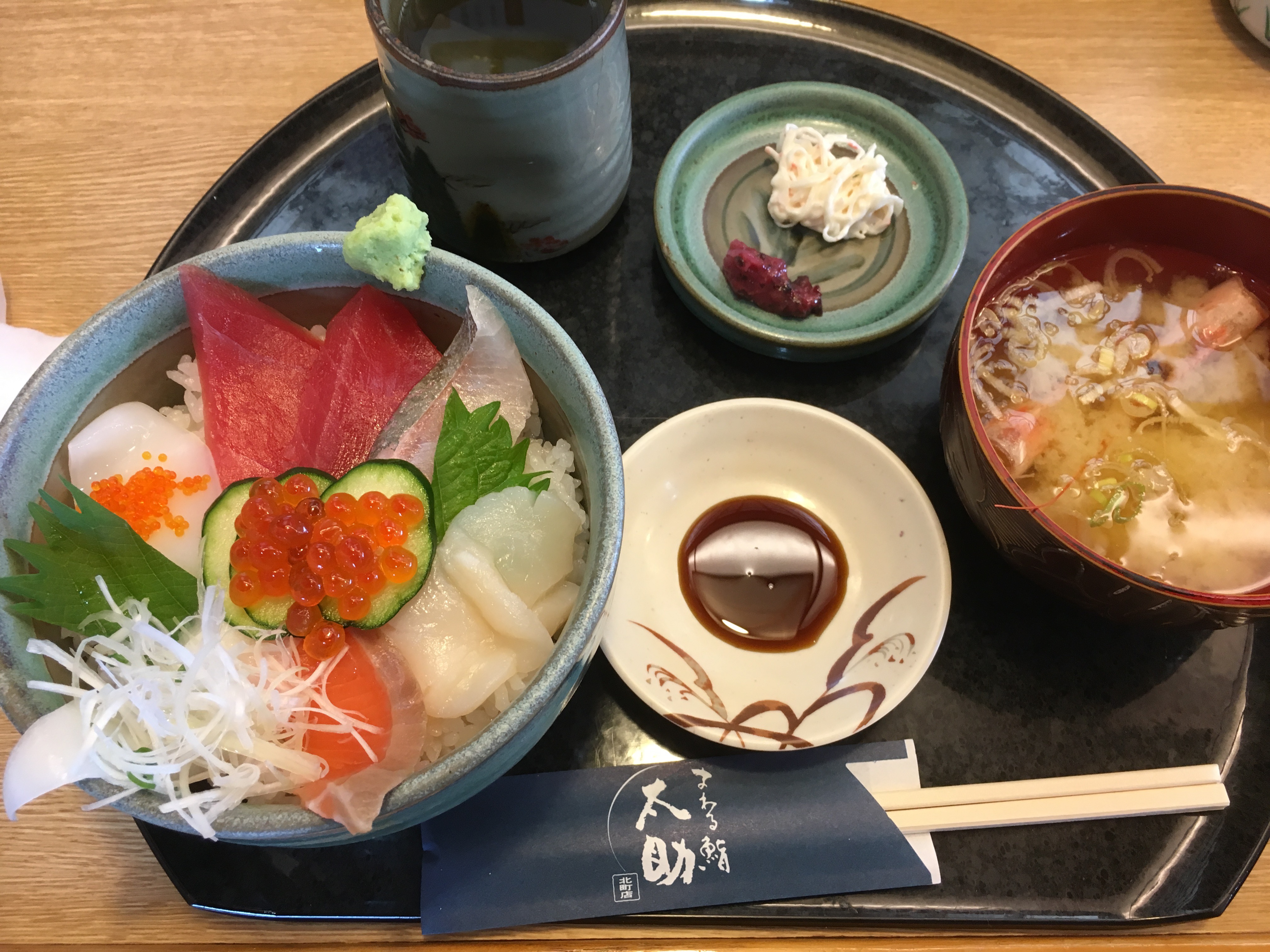 2020年6月19日blogyoko お寿司屋さんへ 今日のランチはSちゃんオススメのお寿司屋 さんへ。 平日のランチがお得との情報でさっそく行って きました。 満腹セット600円税別 美味海丼(うまみ丼)700円税別 味噌汁はあら汁と海老汁があって飲み放題。 これだけでも充分なのですが、 相棒、三貫盛りの光物300円も追加で〜す。