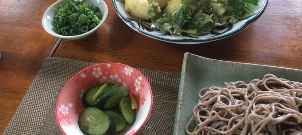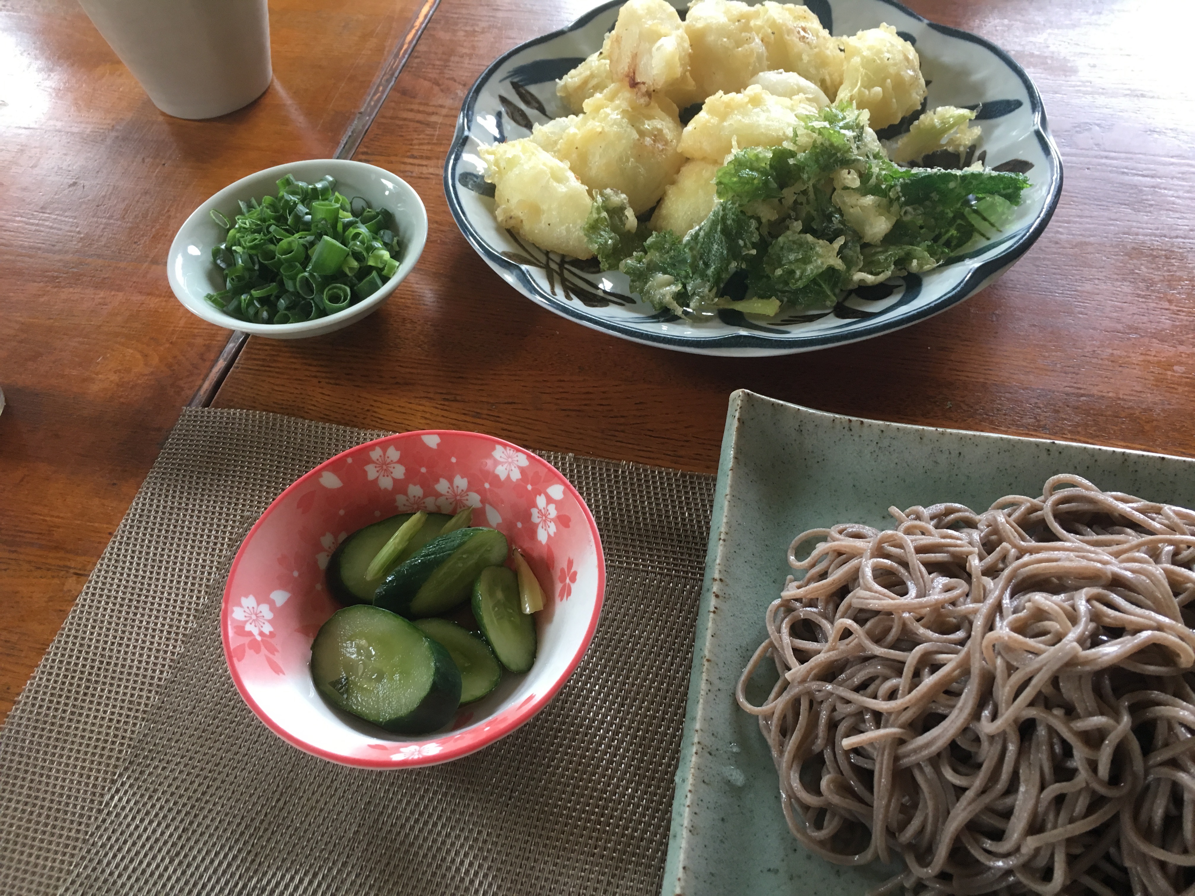 2020年6月15日blogyoko 夕方に 小さな新タマネギをいただいていたので 半分にしたものとシソの天ぷらでお蕎麦 のお昼です。 夕方になったらブルーベリーを植える予定 でしたが、お昼でも涼しいので食べたら すぐに決行で〜す。