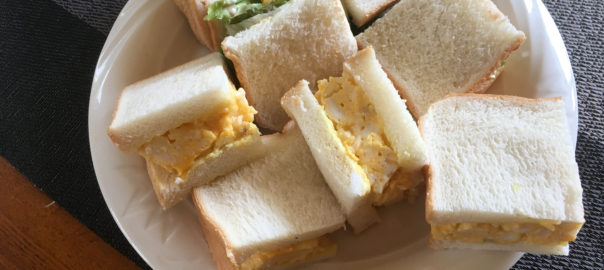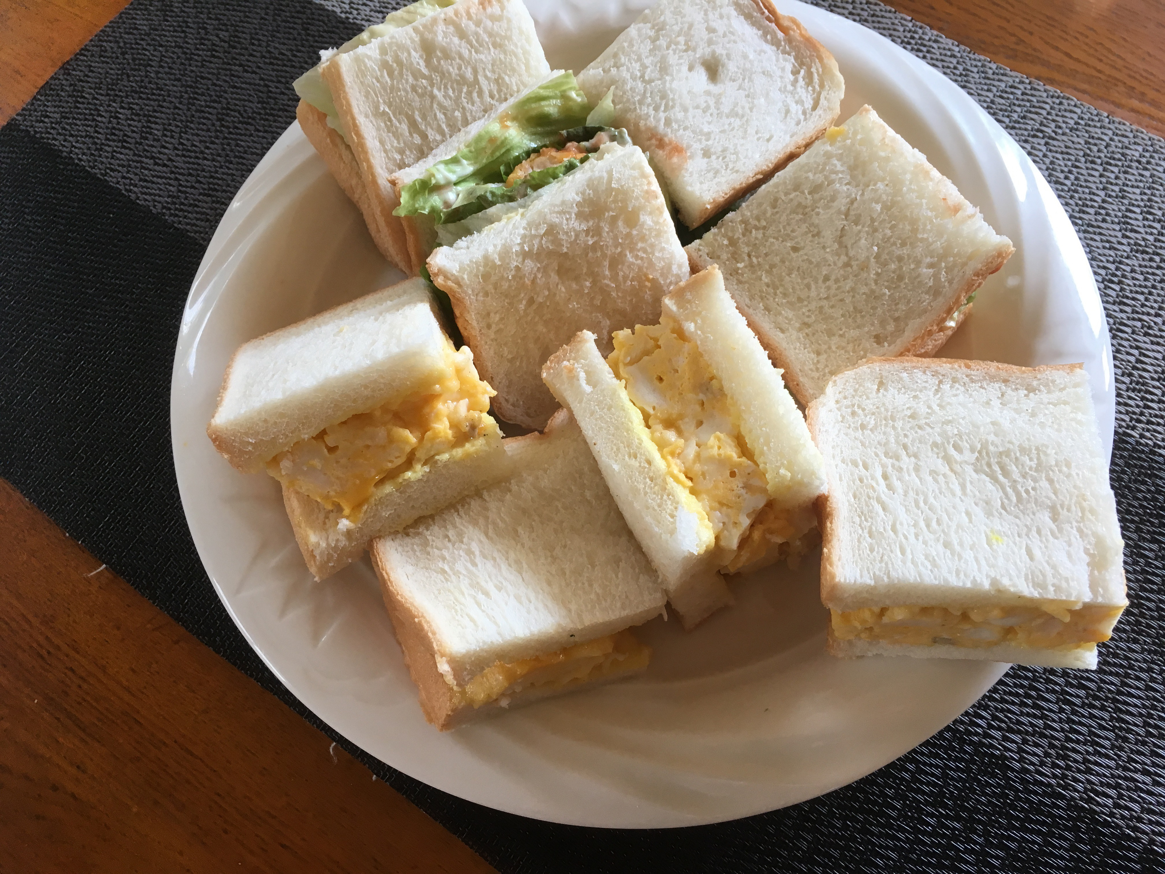 2020年6月24日blogyoko つまみ喰い 水曜日は学校の授業でお昼時間が少ししかない 相棒なので、おにぎり1個とかカップ麺等に なっています。 今日はたまごサンド、チキンナゲットサンドを 用意してみました。 たまごははんぺん入りのレンジでチーンで 作りました。 フワフワにできたので、つまみ喰いで〜す。