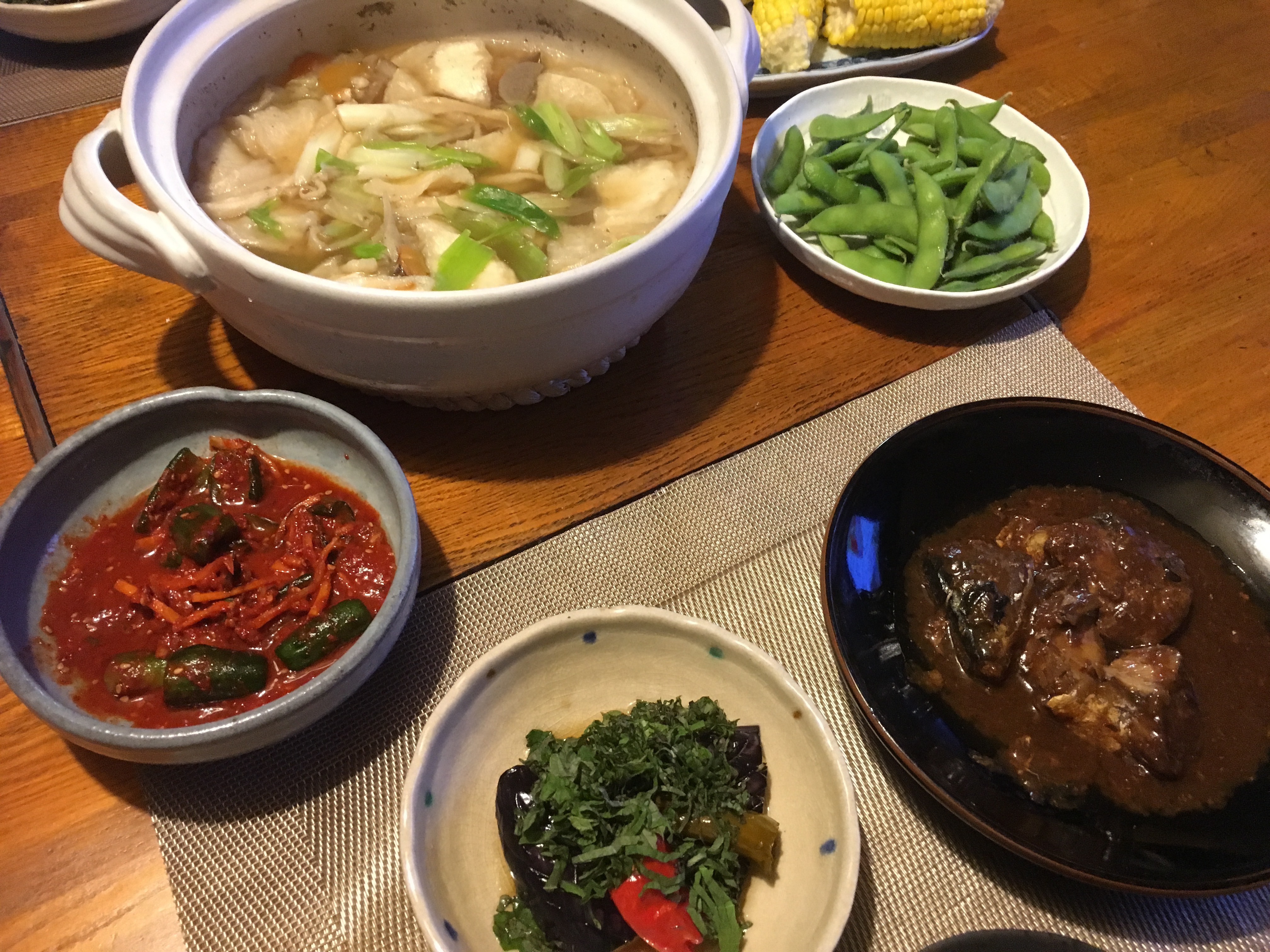 2020年8月11日blogyoko せんべい汁 梅雨明けなのに土曜日は雨。 寒いくらいなので夕食はせんべい汁。 岩手の郷土料理。 山形の芋煮の芋がせんべいに変わった だけの感じです。 温かいものが美味しいなんて、本当に 変な気候で〜す。