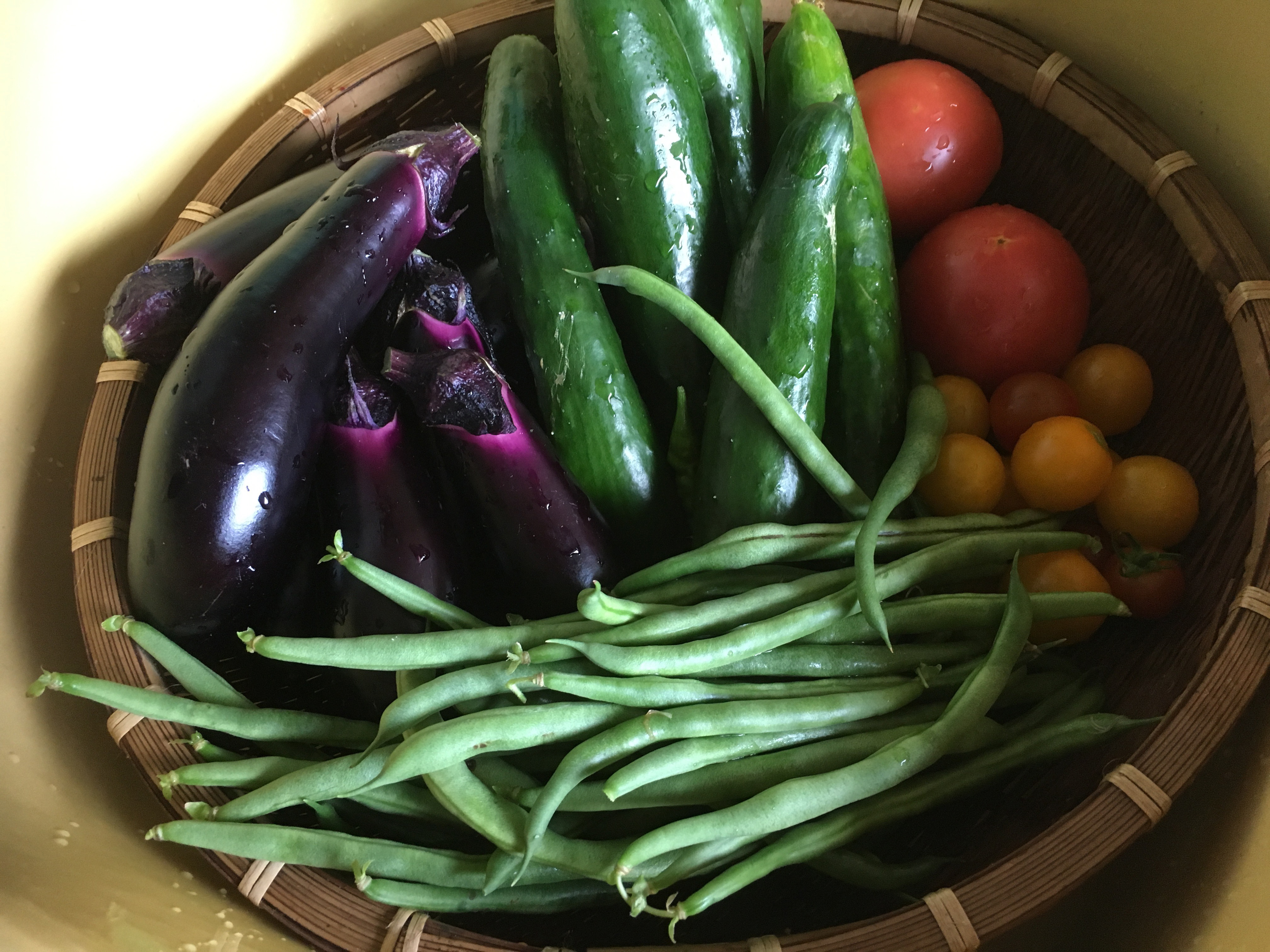 2020年8月12日blogyoko 生長が 早朝からの集中豪雨。 私の地区だけ??? 散歩も行けず畑の収穫も出来ずにいます。 ですが、7時前にピタとやみました。 長靴を履いて、急いで花を摘んだり 大きくなった野菜の収穫です。 漬物にするには倍の大きさのナス。 きゅうりも倍まではいかないけど かなりおおきくなっています。 一日収穫サボると野菜の生長が早くて 大変で〜す。
