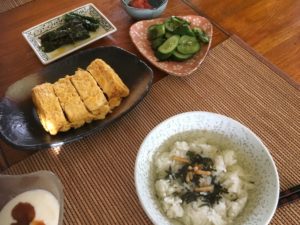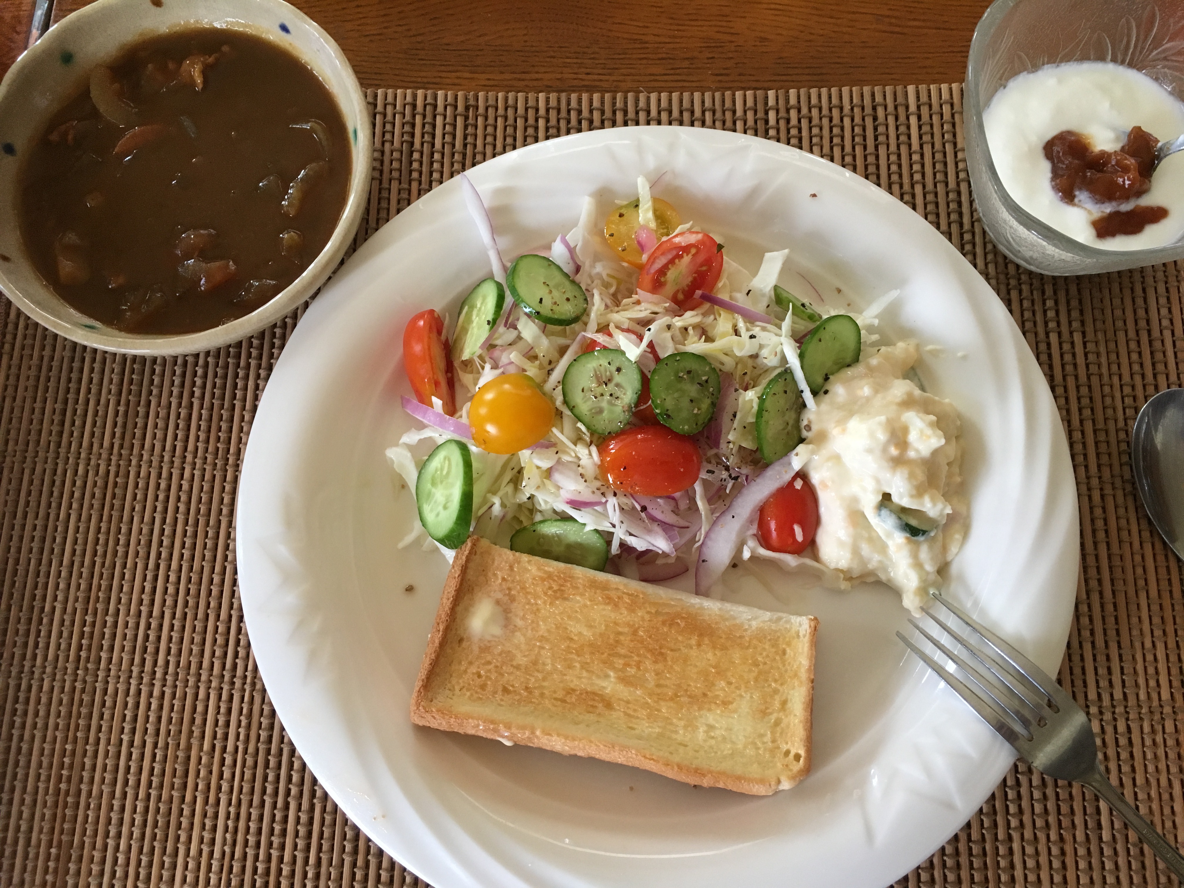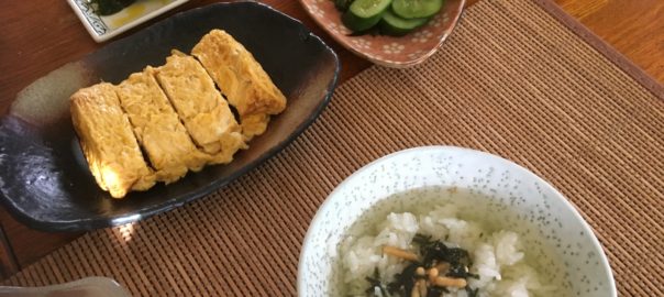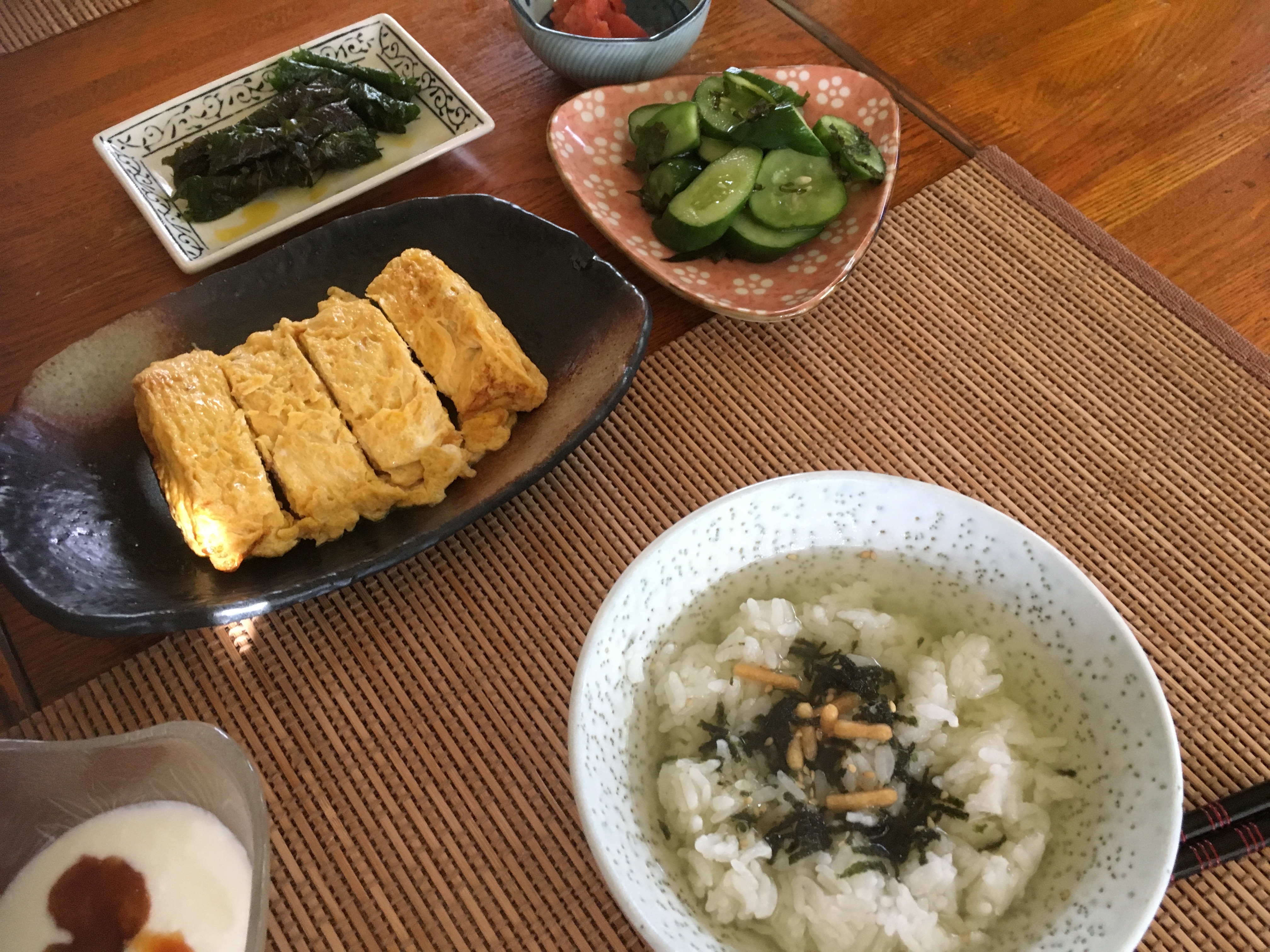 2020年8月24日blogyoko 練習のため 少しだけ残ったカレーとパンの朝食。 相棒はお茶漬けと卵焼き。 卵焼きは一人分にしては多すぎです。 上手にできないので練習のため 卵4個分で作っていま〜す。