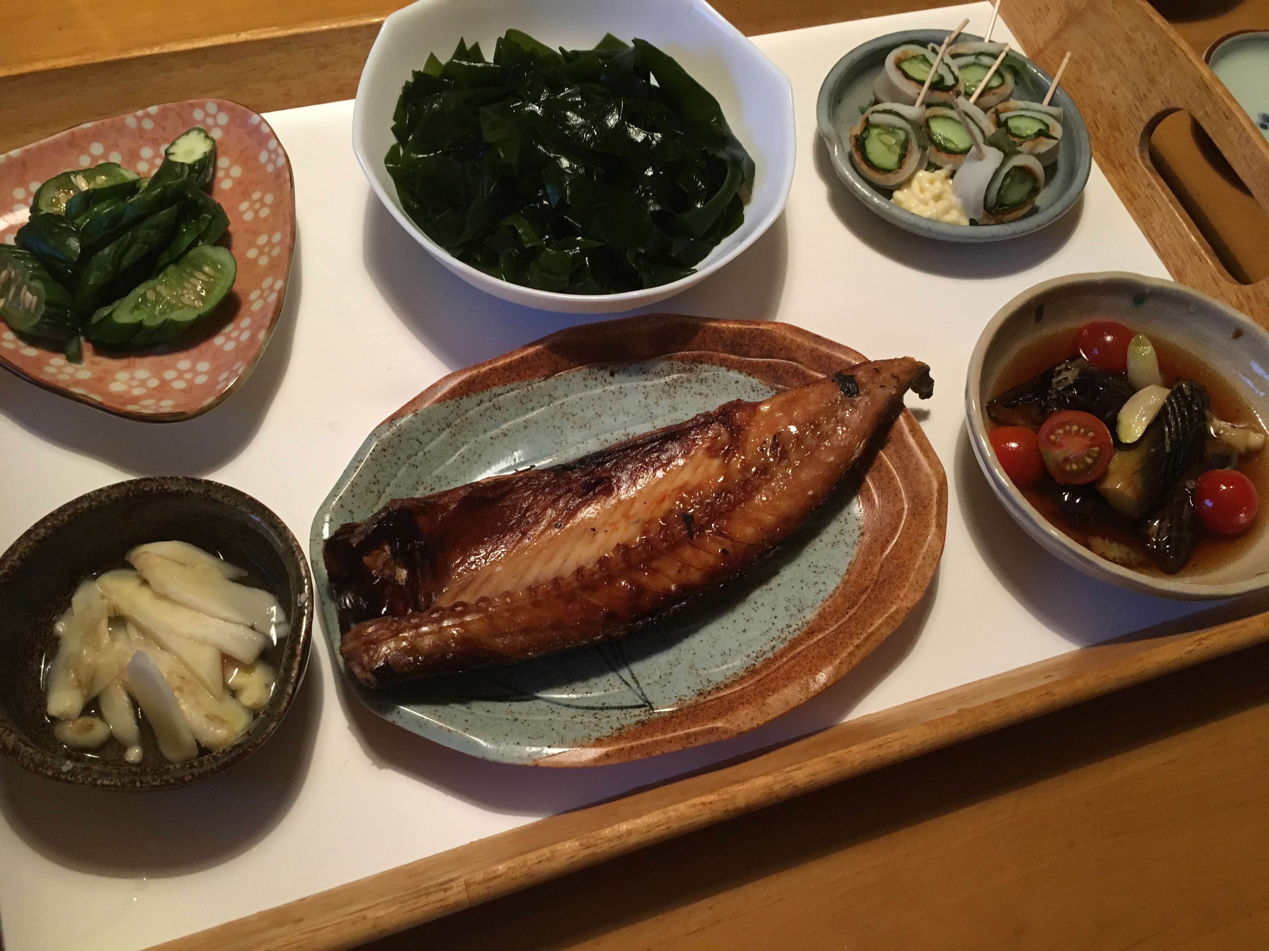 2020年8月20日blogyoko シンプルな 昨夜は6時過ぎにユーフィットへ。 久々、Sちゃんとおしゃべり。 お菓子屋さんにお勤めのSちゃん、 忙しすぎて残業続きだそうです。 お盆の手土産もあるでしょうが、コロナの件で 自宅でお菓子を楽しむ方も多いらしく、減少する どころか売上アップ続きだそうです。 スタッフSさんに任せて7時前に帰宅です。 お肉が続いたので焼き魚と生わかめの刺身 あとはナスの煮浸し。 シンプルな夕食で〜す。