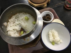 2020年9月7日blogyoko 夕食開始 7時半から夕食開始。 遅い時間のせいかお客様がかなりパラパラ。 コロナの心配はどこへやらです。 釜飯は火力が強すぎて半分はおこげ。 デザートまでしっかり食べてきました。 ごちそうさまでした。