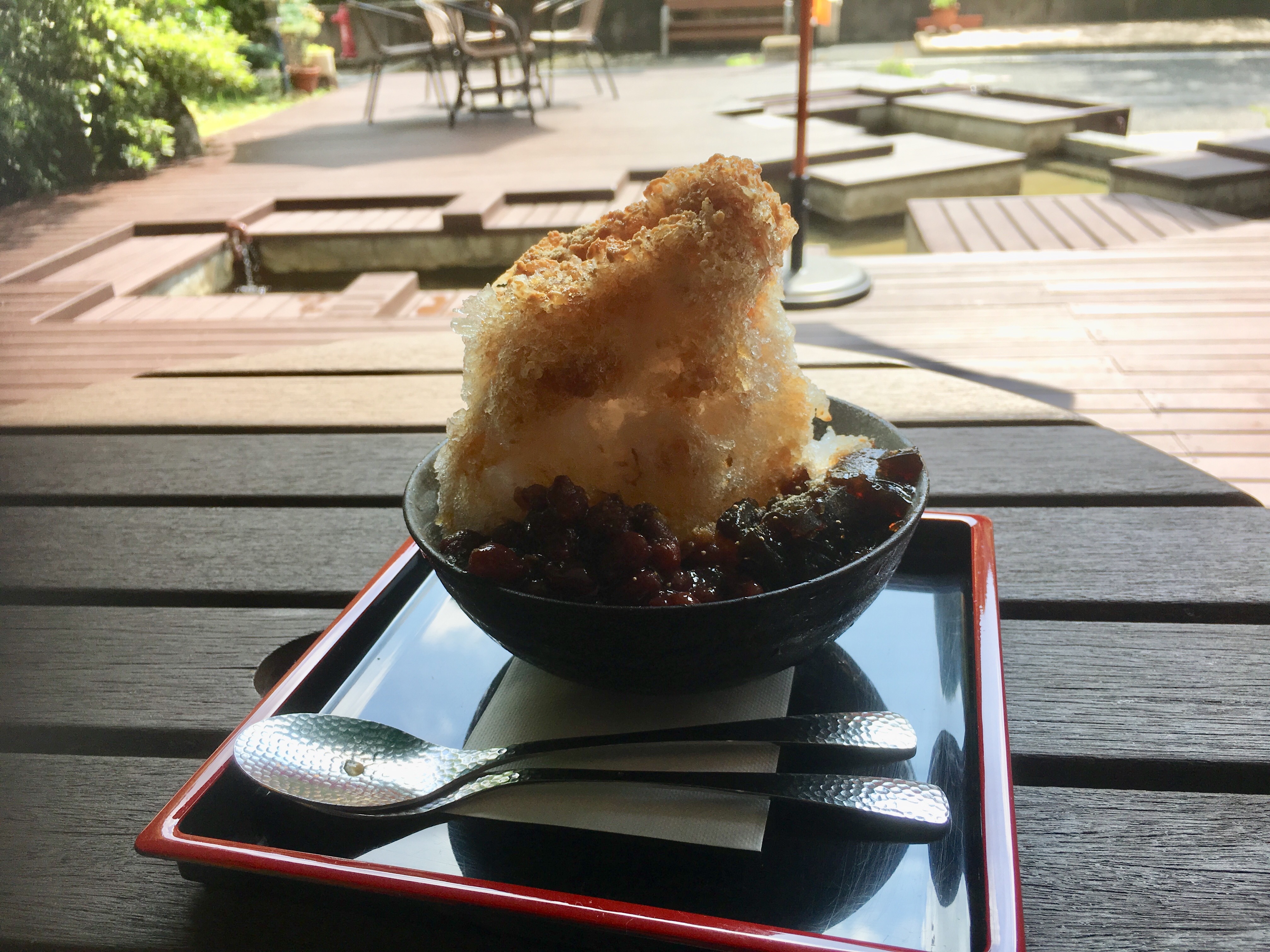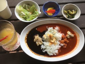 2020年9月7日blogyoko 黒と赤のカレー 今度はあつみ温泉のチットモッシェで 二人で足湯。 黒蜜きなこのあずきかき氷 黒と赤のカレーでランチです。 そこそこ相棒にとっては辛いカレーです。 このあとはホテルへ。