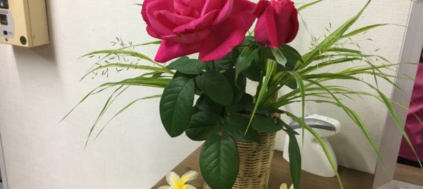 ユーフィットの棚の上に大輪のバラです。