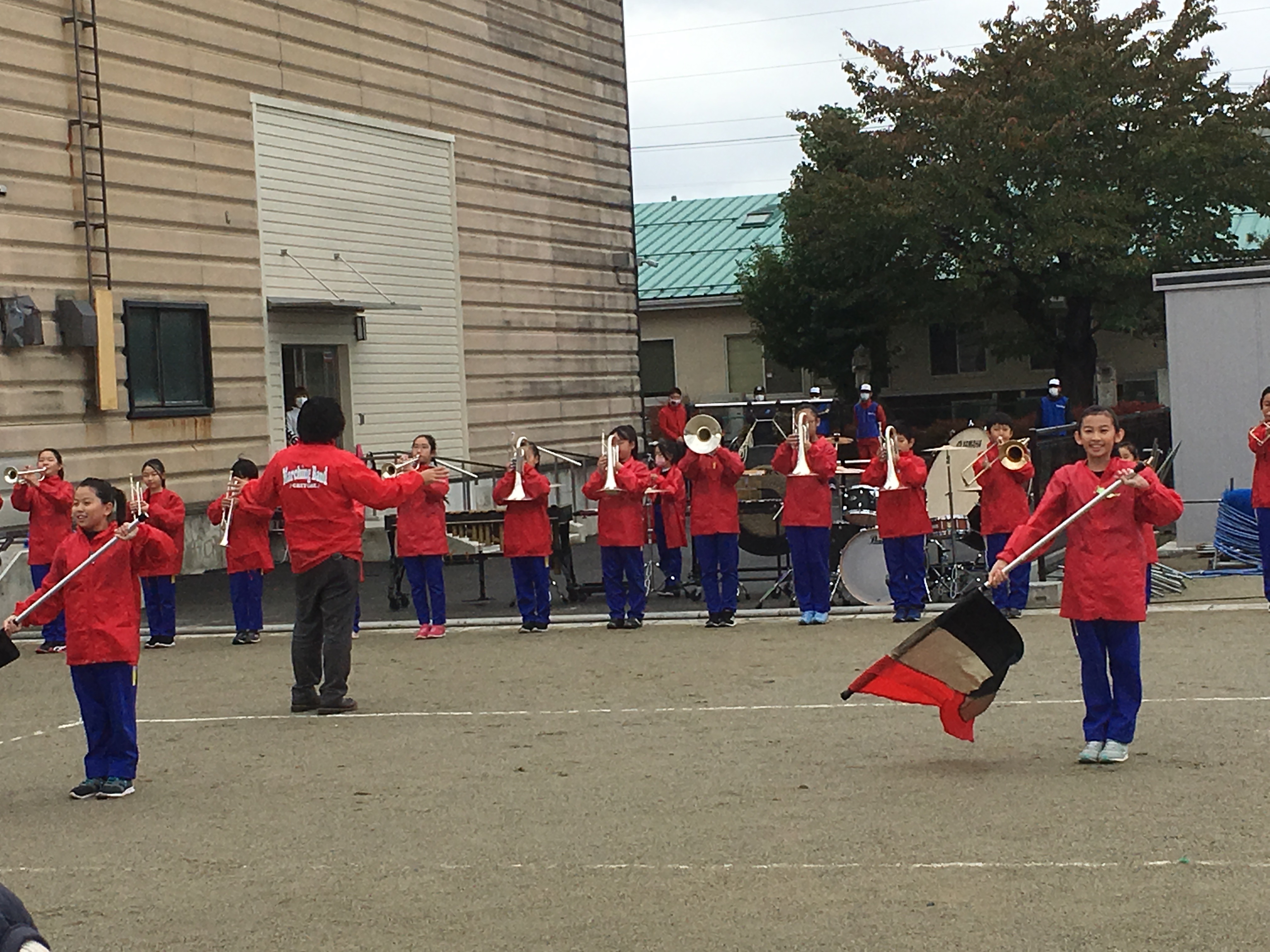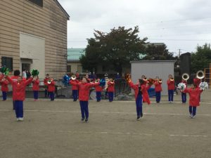 2020年10月26日blogyoko 地域交流会 苗植えが終わったら、千歳小学校へ。 従来であれば運動会なのですが、コロナのことを 考えて小雨の中、地域交流会。 会が始まる前にマーチングバンドの披露です。 競技はノルディックやグランドゴルフ。 あとは各場所でのクイズ問題。 参加賞だけでもすごいで〜す。