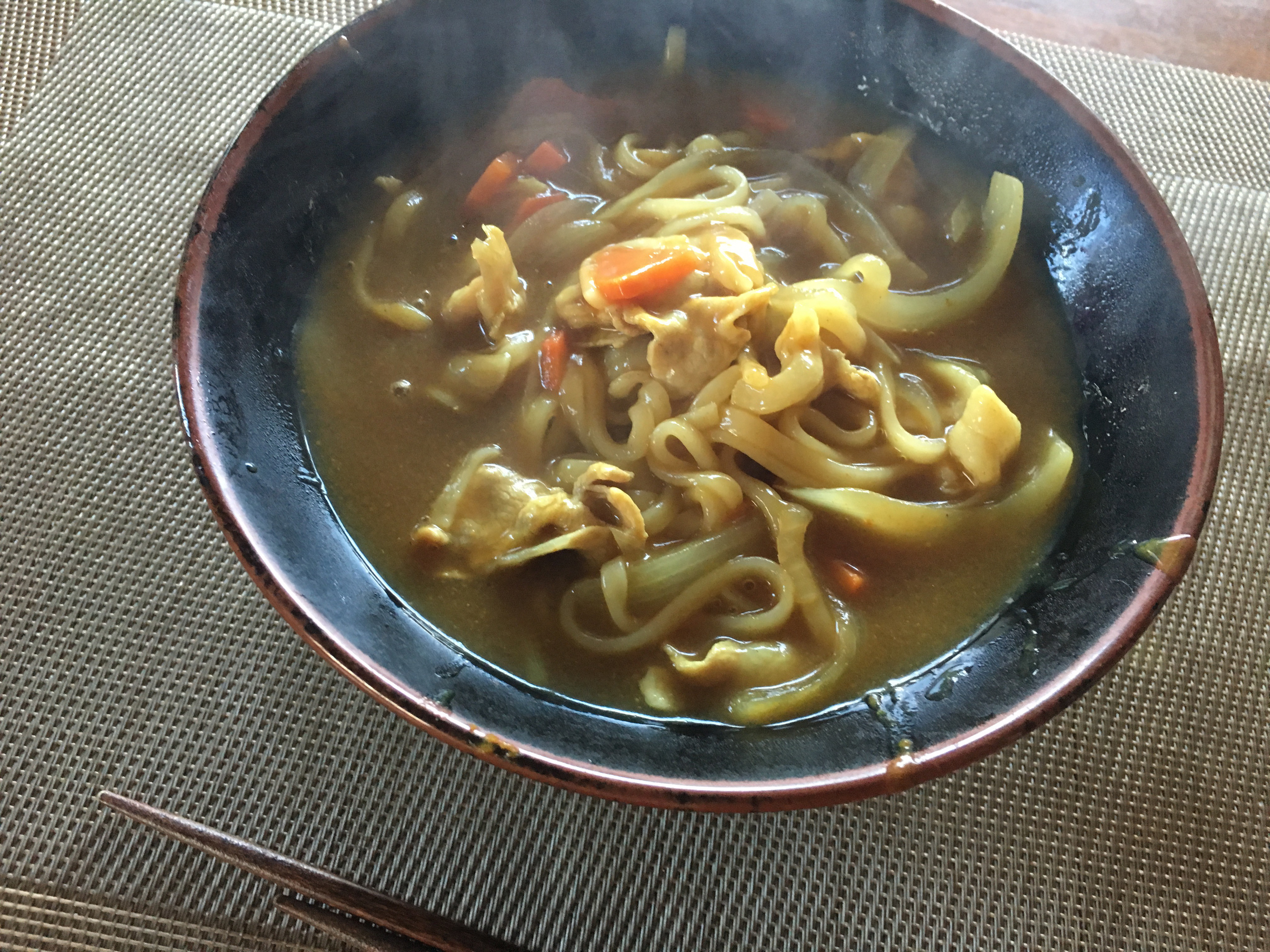 12時過ぎに戻り、半生うどんでカレーうどん。