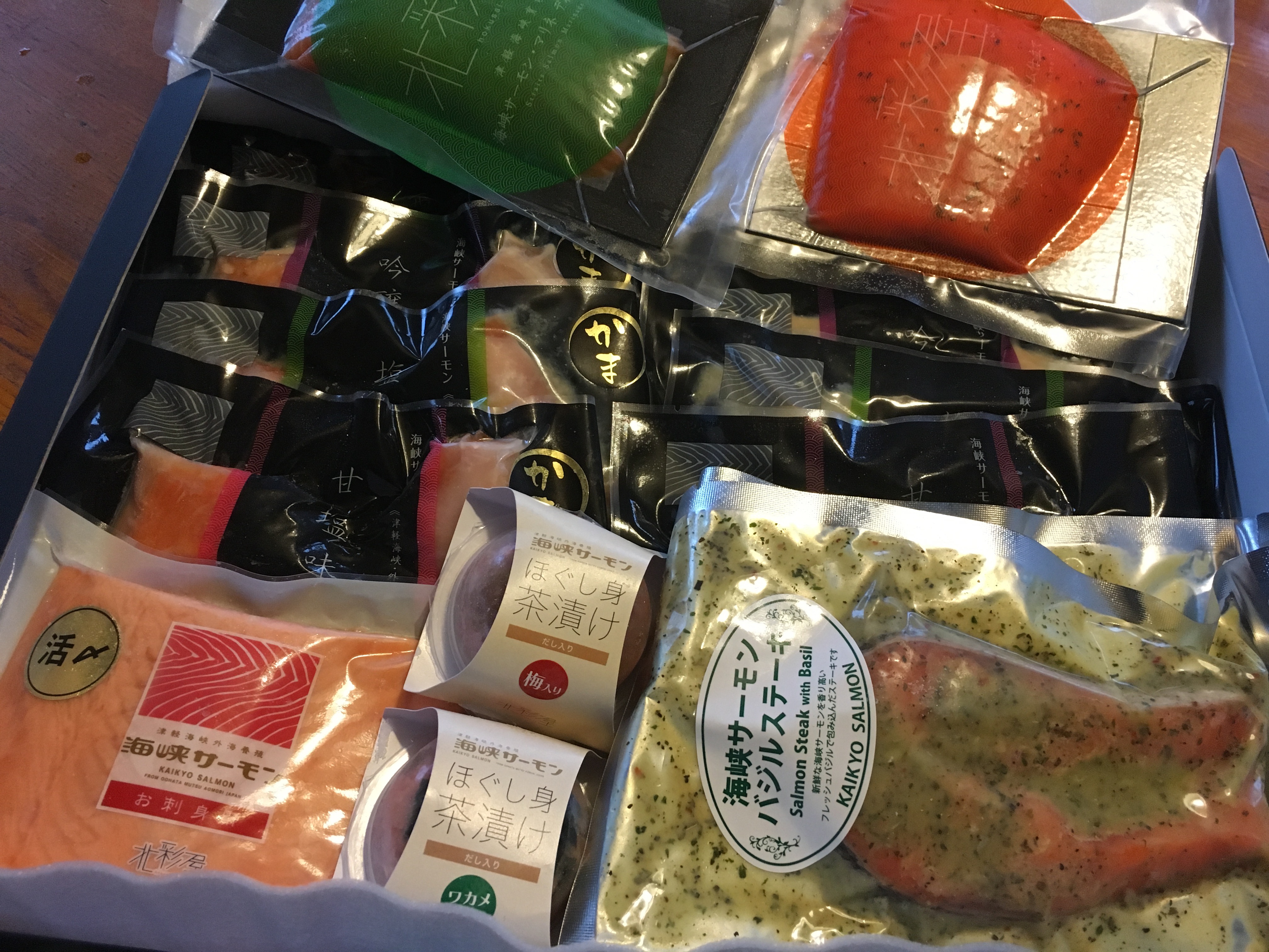 2020年12月3日blogyoko 検討中 青森のお客様からサーモンシリーズが 届きました。 ご飯のお供&お酒のつまみに最高です。 消費より届く方が多いから大型冷凍庫が いっぱいで、もう一つ小型冷凍庫の購入を 検討中で〜す。