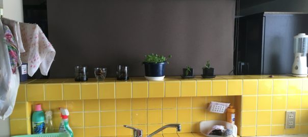 2020年12月21日blogyoko 台所 台所イメージチェンジ終了です。 茶のロールスクリーンの向こうには 洗濯物が、これで見えなくなりスッキリ。 ざるや鍋が並んでいた吊棚を取り払い ました。 あとは年末の休暇で食器片付けで〜す。