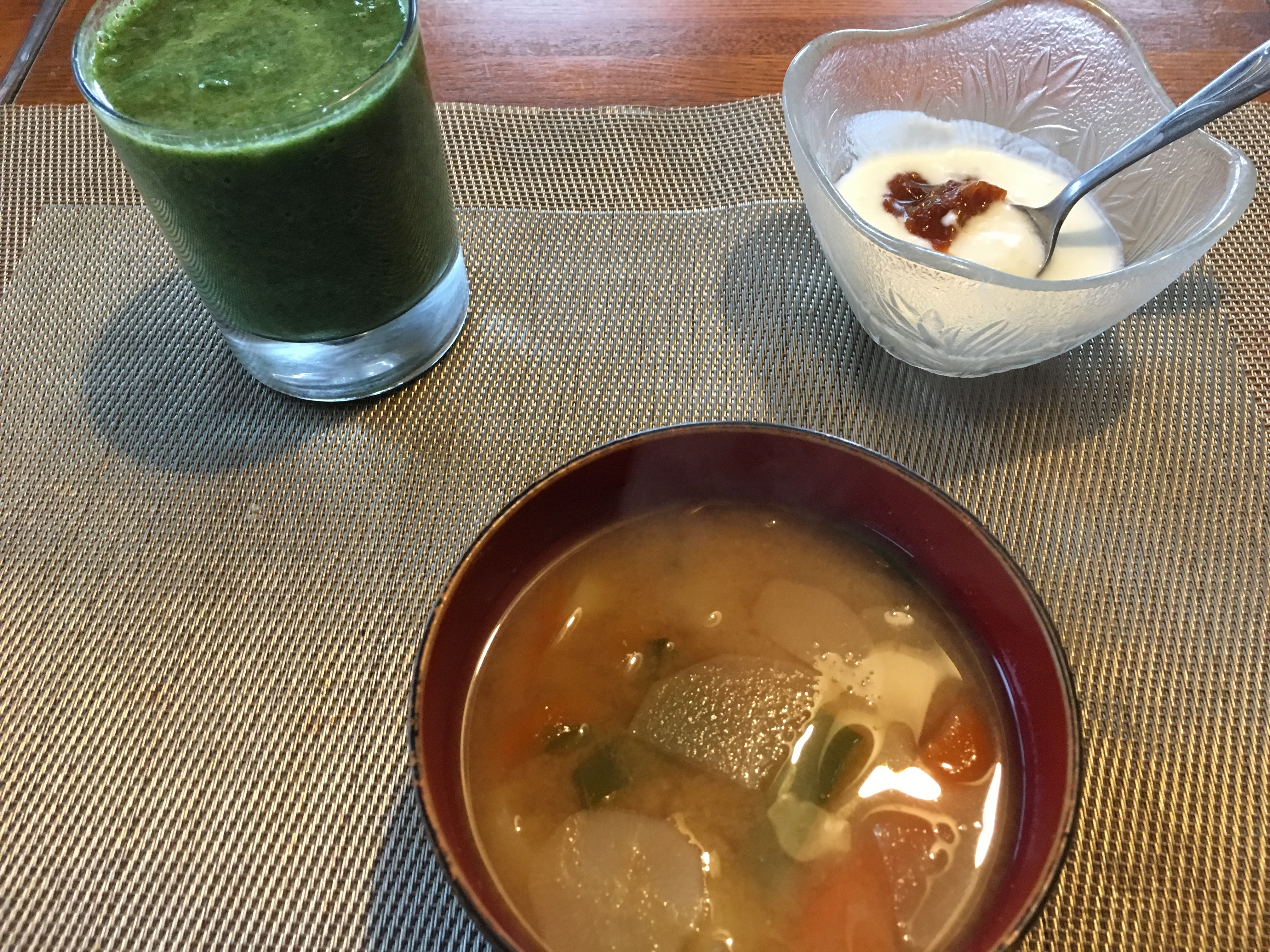 2020年12月23日blogyoko 効果なし 朝食は具沢山味噌汁とほうれん草と バナナのジュース。 相棒のダイエットのために、こんな 内容を続けていますが、これでも多いと 言うようになりました。 でも、朝食だけなので全然ダイエット 効果なしにしかみえませ〜ん。