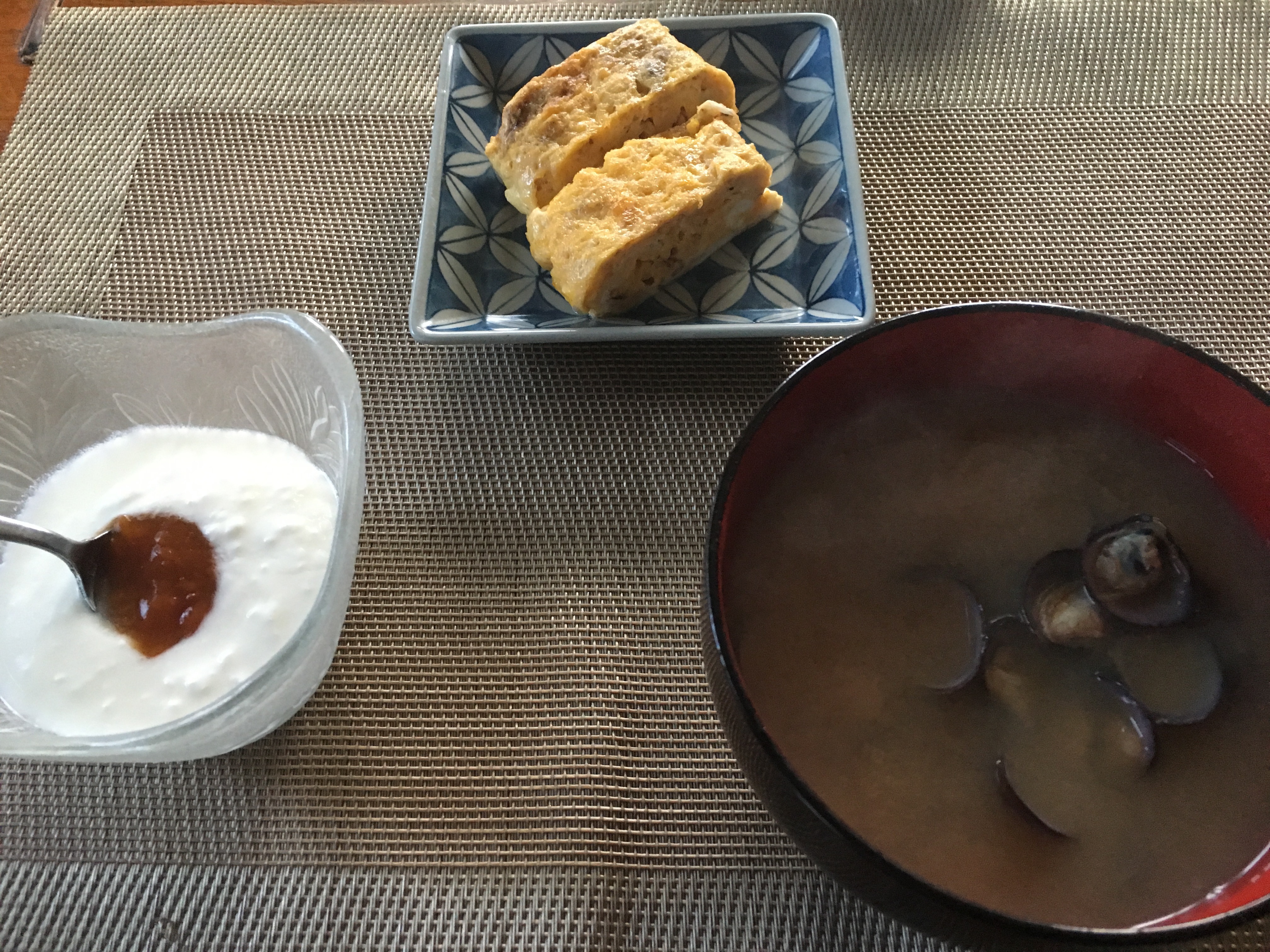 2021年1月13日blogyoko 砂糖 今日は朝から青空が広がる予定で いたのに小雪です。 洗濯物いっぱいしたのに、、、。 相棒、お疲れの様子なので朝食は 少なめに。 しじみ汁とだし巻き卵。 甘いのが苦手な我が家ですが、今回は 少しだけ砂糖を入れてみたら案の定 卵に砂糖入れた? 即、反応がでてしまいました。