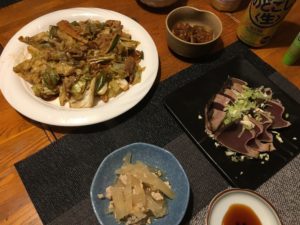 2021年2月8日blogyoko あえて 金曜の夜は冷凍していた鰹のたたきと ホイコーロー。 肉はあまり好まないけどホイコーローの タレが好きで翌日の熱々ご飯にかけて 食べるのが好き。 あえてタレを残していま〜す。