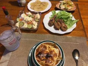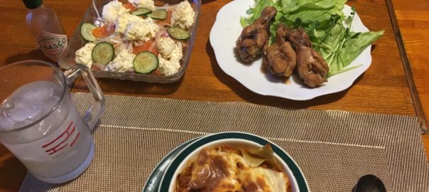 2021年2月15日blogyoko すべて同じ お昼を食べたら私は少し休憩。 相棒は自宅の補修やサッカー誘致の 破れたのぼり旗の回収で半日。 鶏の簡単煮とサーモンのカルパッチョ& チーズの夕食。 私が食べたくてラザニアも追加。 相棒、ドリアもグラタンもラザニアも すべて同じメニューにしか思って いませ〜ん。