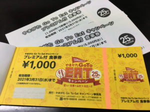 2021年3月3日blogyoko プレミアム食事券 プレミアム食事券、最初の頃は1ヶ所に200人も 並んだのにまだ残っている所があるんですね。 たまたま市外に出る用事があったので もしかしてと寄ったら、ありました。 最終使用が3月末までだったのが6月末までに 延びたので、これは買うしかないととりあえず 週末の外食用に3冊ゲットで〜す。