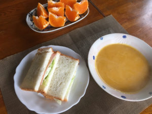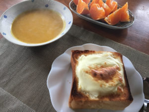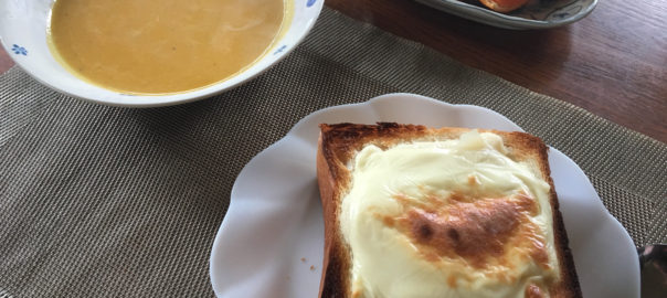 2021年3月15日blogyoko 絶対無理 日曜の朝食は相棒はサンドイッチ。 私は食パンの中身をくりぬいてシチューが 残っていたのでそれを入れてチーズを。 パンプキンスープもあるので、さすがに この量は無理でした。 相棒のダイエット絶対無理〜。