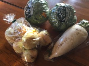 2021年3月11日blogyoko 正解 帰宅した相棒からお土産。 道の駅で野菜を購入してきたそうです。 レタス1個40円、3個で100円だったそうです。 辛味大根は150円。 新玉ねぎは165円。 すべてお得価格です。 スーパーに一緒に買い物に行ってもらうと 男性でもちゃんと価格がわかるように なるもんですね。 たまには失敗もありますが今回は正解で〜す。