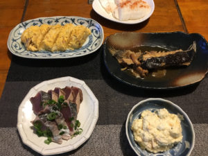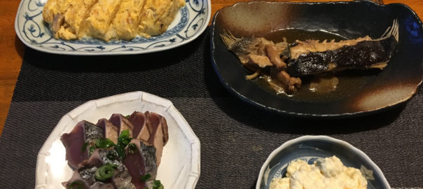 ナメタカレーの煮付けと鰹のたたきが