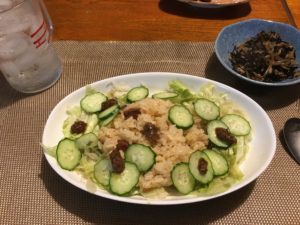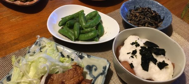 2021年3月22日blogyoko 早めの夕食 土曜はいつもより早めの夕食。 相棒用は何品も並ぶのに 私のは超適当のこれだけ。 豚の角煮もマグロのとろろかけも 不要な私。 レタスを敷き詰めたところに味付けごはん。 ただ味が薄かったので、ままけはのピリ辛を チョイスで〜す。