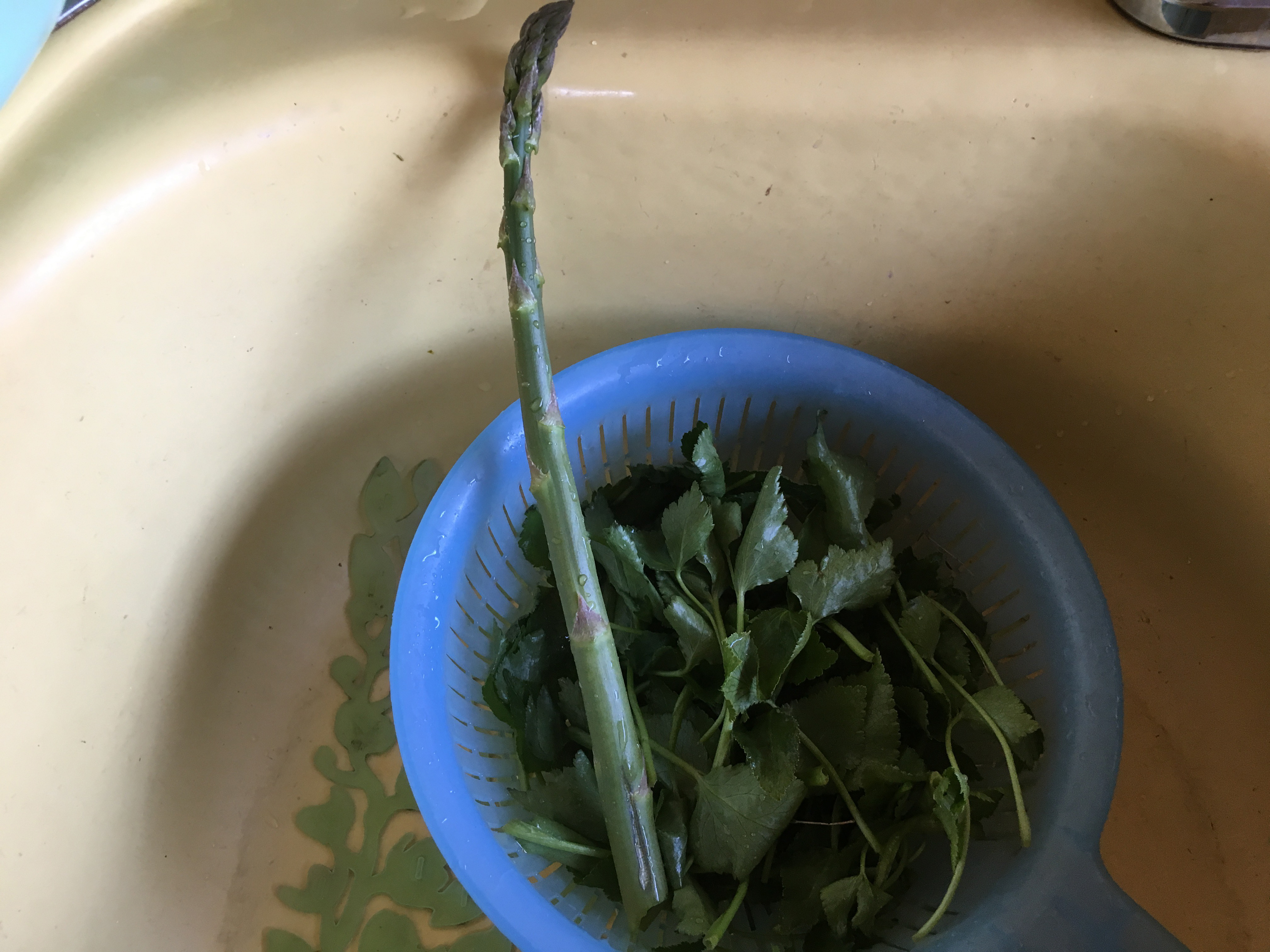 2021年4月12日blogyoko 楽しみ 耕運機が動きません。 仕方がないので少しだけ手作業で畑を耕し 肥料を撒き来週から苗の植え付けです。 相棒が作業している間、私はみつぱとアスパラの 収穫です。 たった1本ですが、しっかりしたアスパラです。 今週中には次々だと思うので楽しみで〜す。
