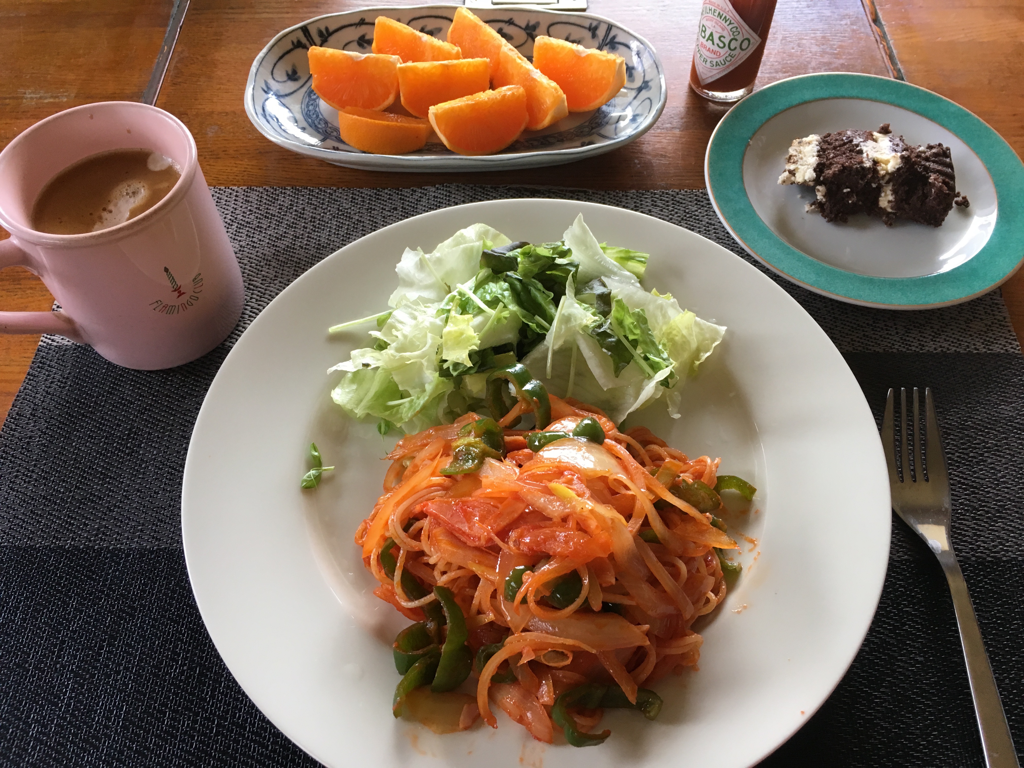 2021年4月12日blogyoko ランチ 土曜の朝は掃除洗濯三昧、そして庭いじり。 先週できなかった鉢物の植え替えです。 やっと一息の時間がお昼ちょっと前です。 お出かけも気が進まずでナポリタンの大盛り のランチで〜す。
