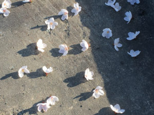 2021年4月12日blogyoko 本格的に 不要不急の外出がまた山形市が延長になり 当分ジムにも通えそうにないから日曜から 本格的に散歩開始です。 河原をテクテク。 よそ様のタラの芽を横目に。 サクラも散り始めました。 でもこのサクラは1枚づつの花びらでは ありません。 鳥のいたずらでしょうか? 1時間半の散歩終了で〜す。