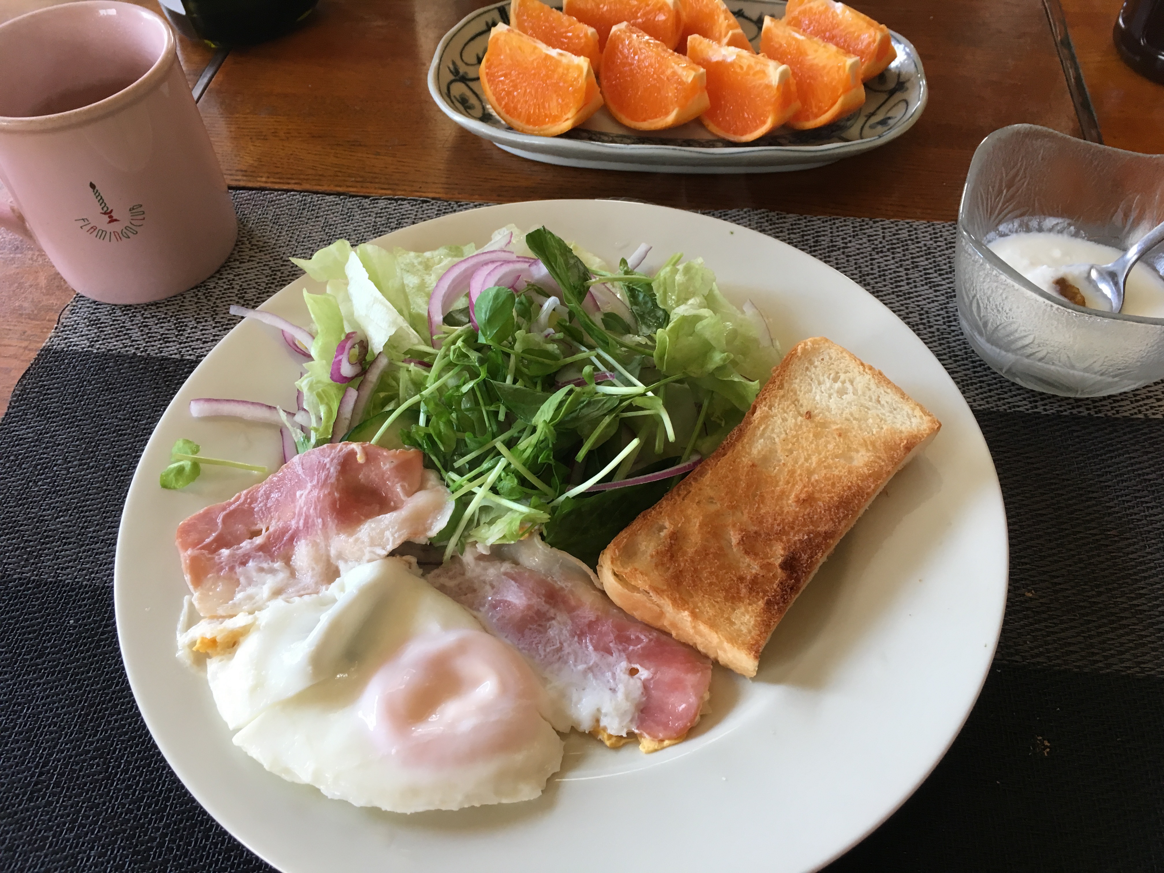 2021年4月2日blogyoko ウエストが いつもなら週末はランチに出かける予定が 今日は来客がありで相棒とお客様がランチ。 ではと自分の弁当は簡単に準備し朝食は しっかり。 このままだと運動もせず、食べてばかりで 腰が治りコルセットを外したらウエストが なくなっているかもで〜す。