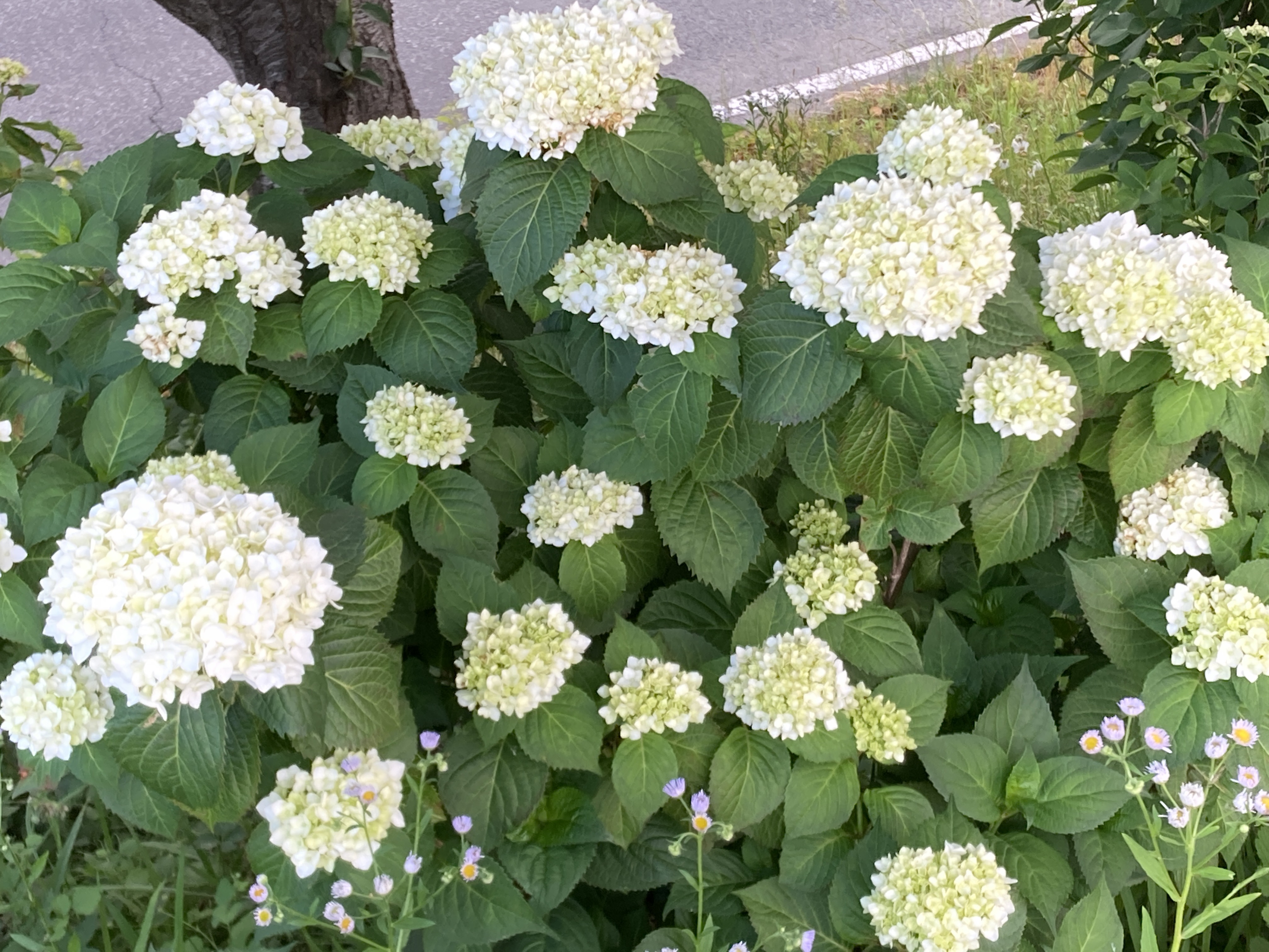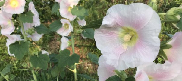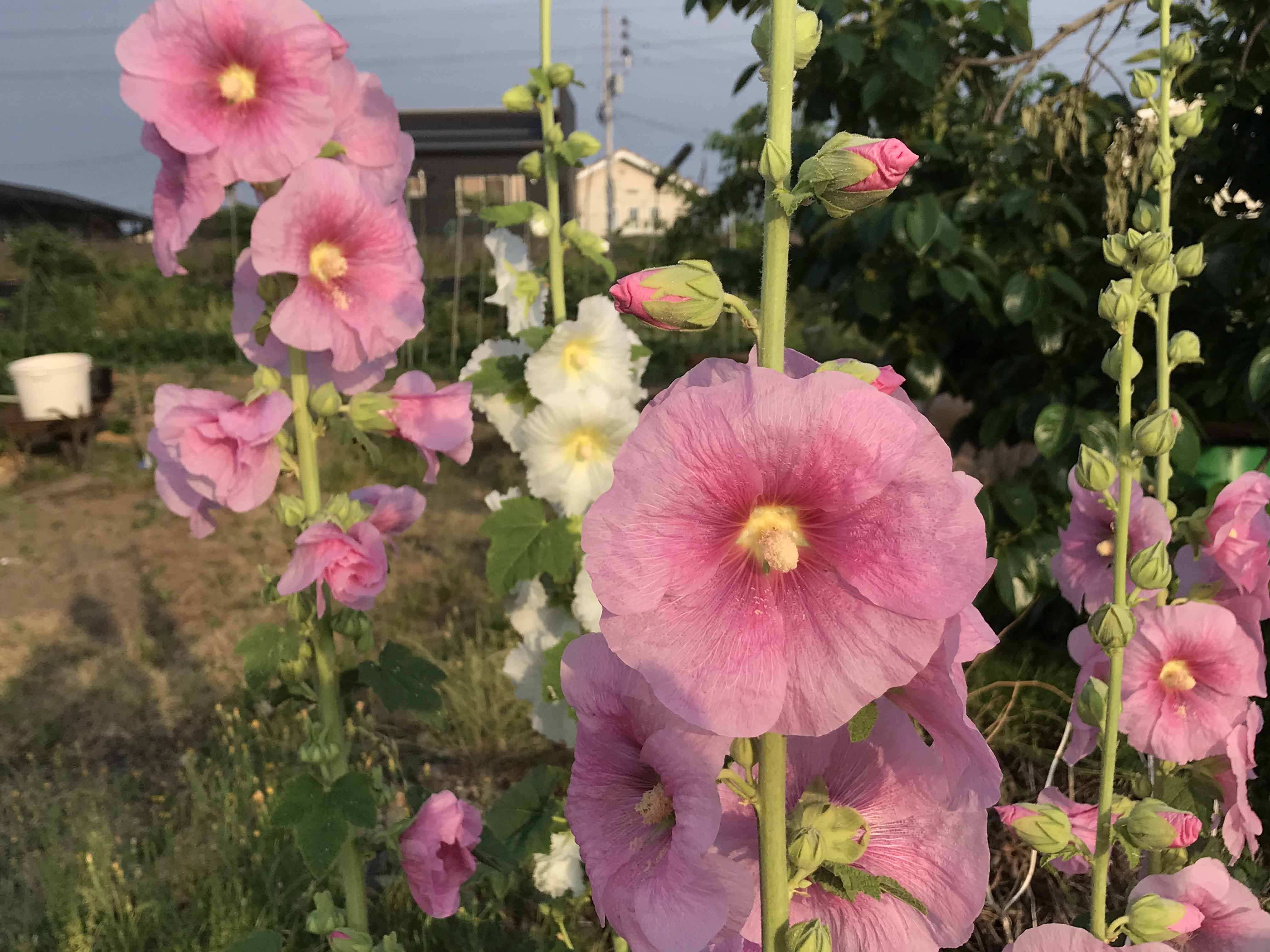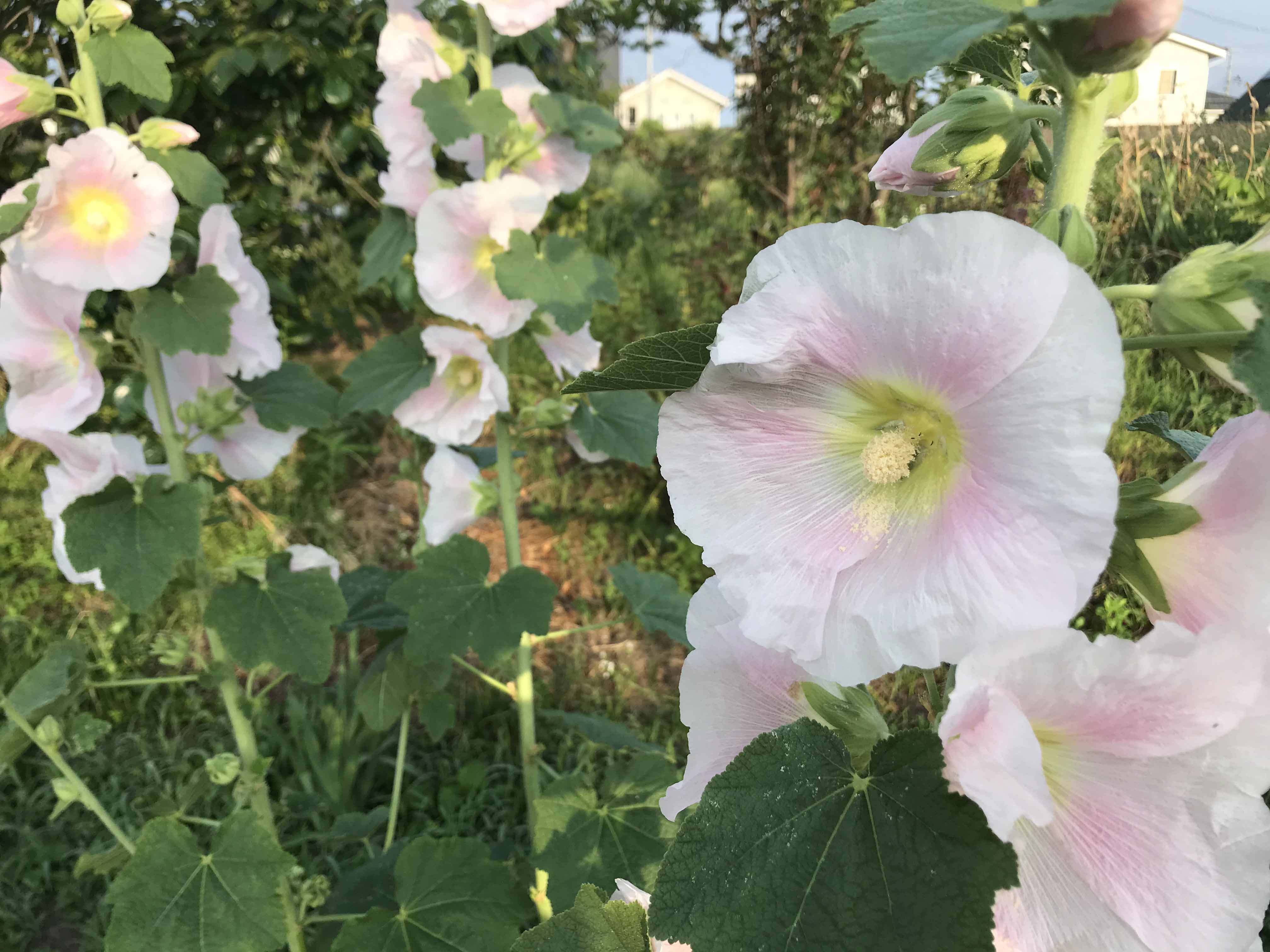 2021年6月17日blogyoko お花鑑賞 紅白のタチアオイが綺麗です。 白いアジサイも。 ポピーも。 今までは5時半近くに家を出ていたのが 今は5時出発の散歩になっています。 今日の散歩はお花鑑賞で〜す。