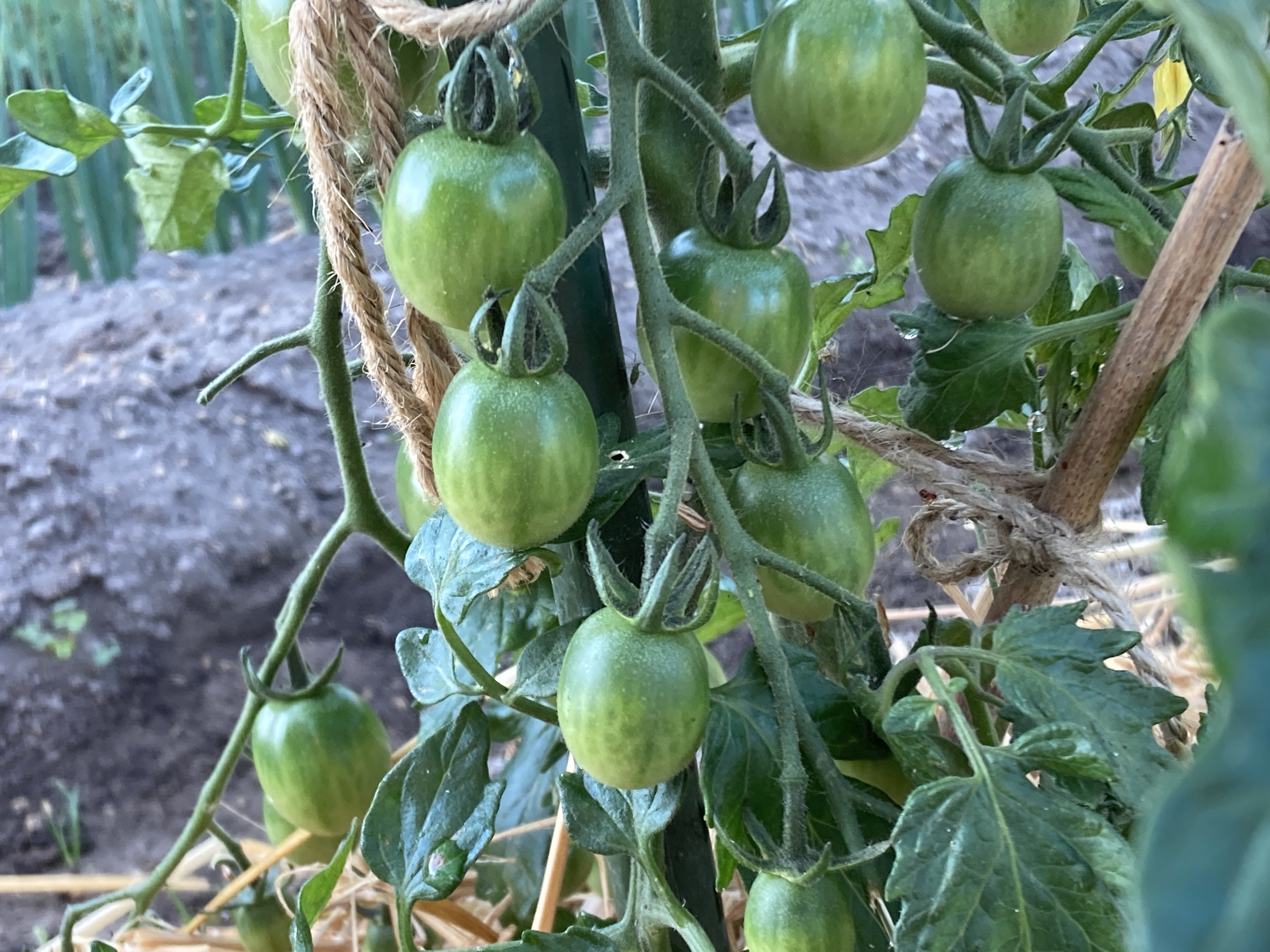 2021年6月10日blogyoko トマト 相棒が早朝のうちに出かけたので朝ごはんの 準備もなし。 花を飾ったら、再度畑です。 実はいっぱいなっているけど全然色味が。 こちらの種類の違うミニトマトも全然です。 野菜が次々と収穫できてきたのでトマトも 購入を控えていましたが、もう一回位は 購入で〜す。