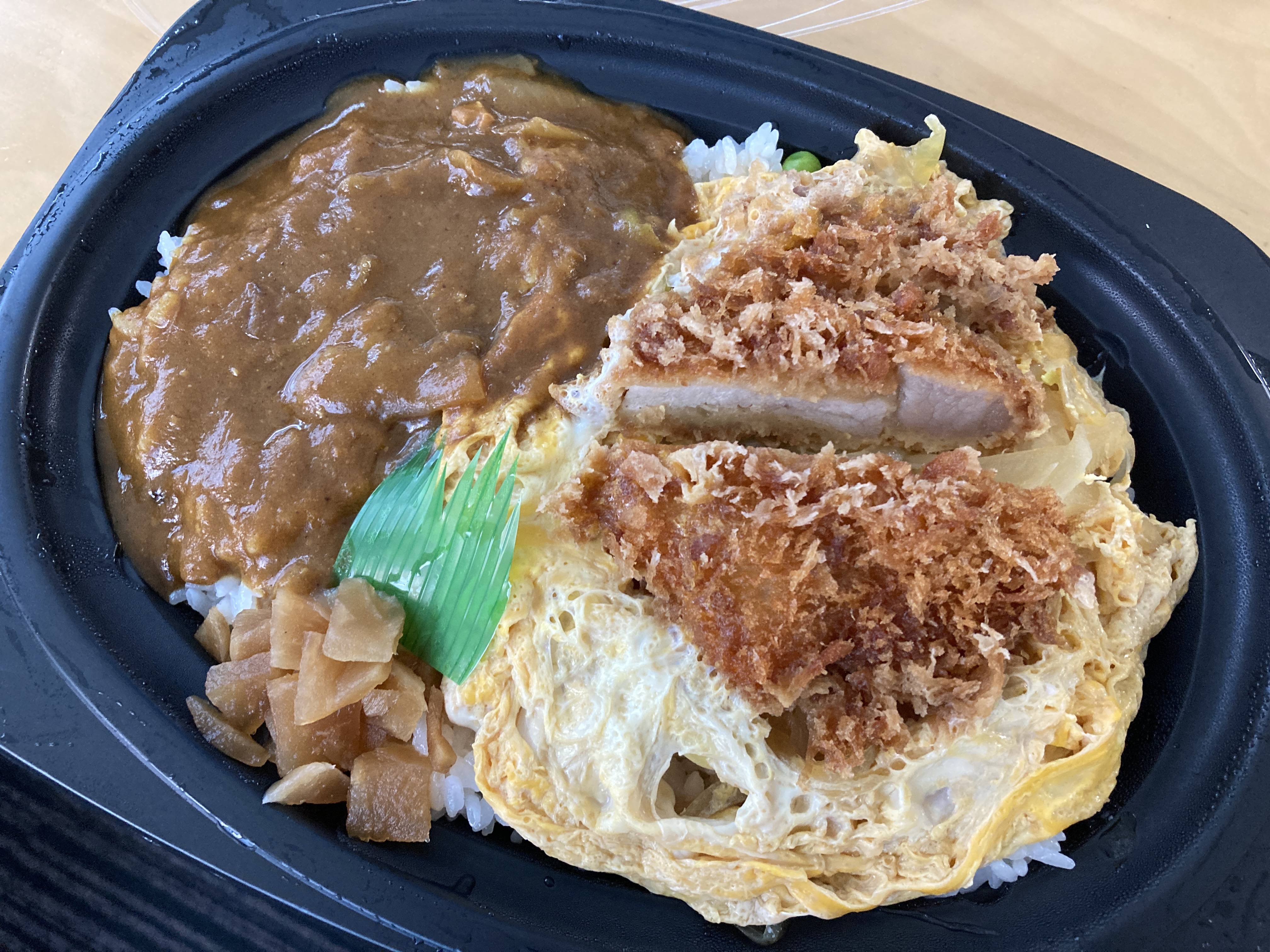 2021年6月8日blogyoko スタッフのお昼 今日のスタッフのお昼は ソースチキンカツ弁当 もう一人はカツ丼カレー。 カツカレーはよく見るけどカツ丼とカレー? カロリーかなりでしょうね。 相棒は昼抜き3週間目になり、私はというと いつも残り物の詰合せ弁当。 それなりに食べていま〜す。
