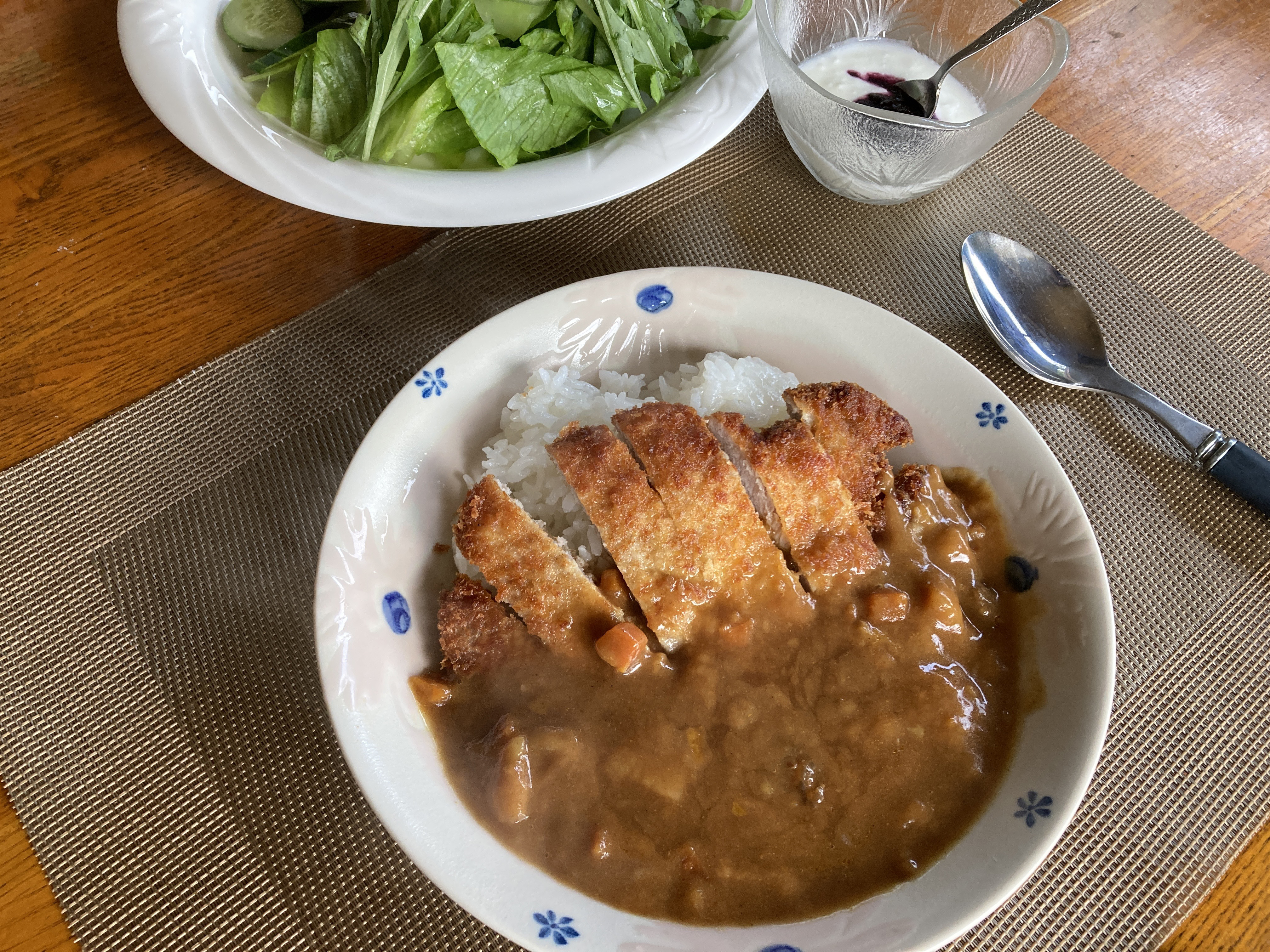 2021年6月9日blogyoko お子ちゃま 私はいつも通りの朝食。 昨日のお昼、スタッフのカツ丼カレーの お弁当を見て、どうしても食べたいと相棒。 朝食にカツカレーです。 それにしてもお子ちゃまみたいで〜す。