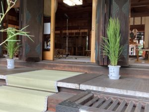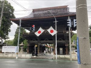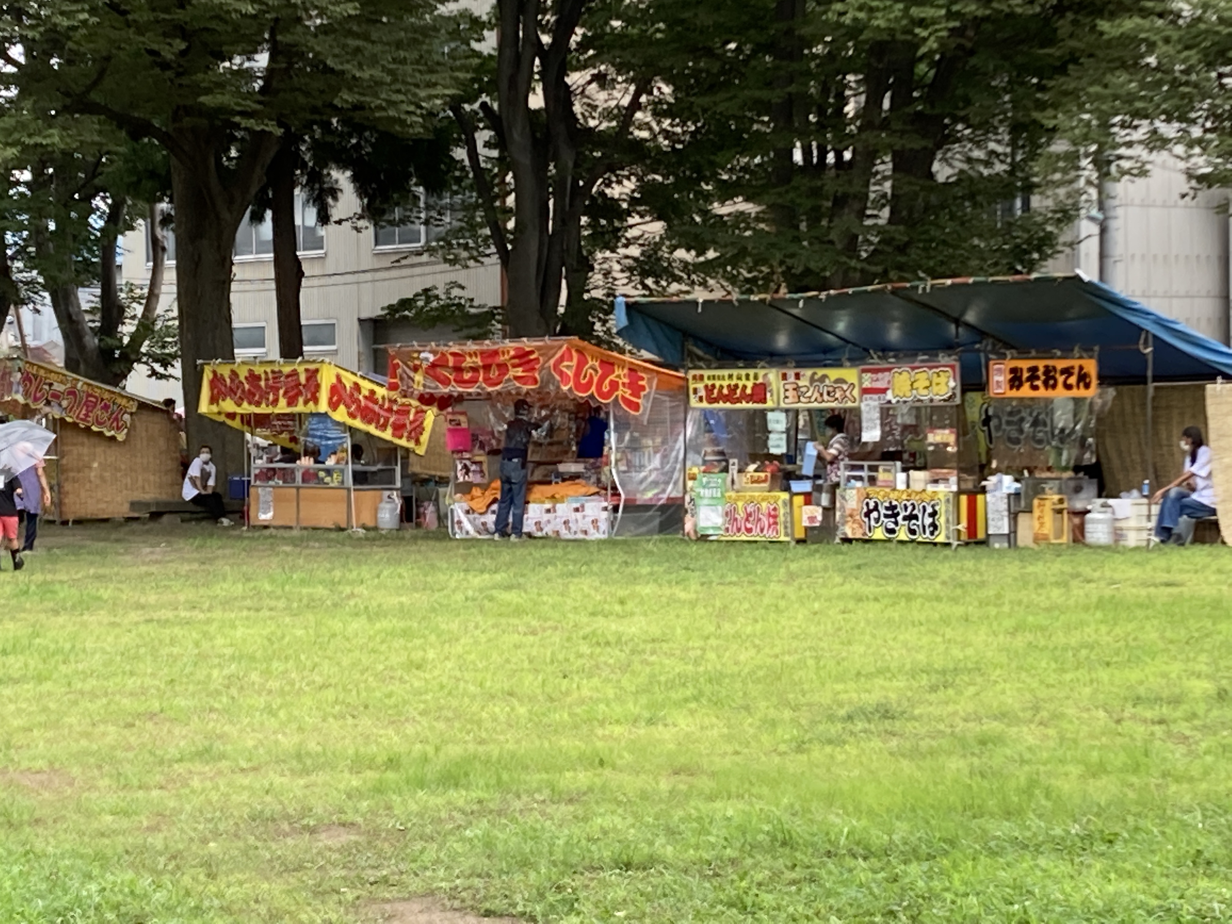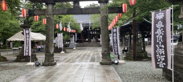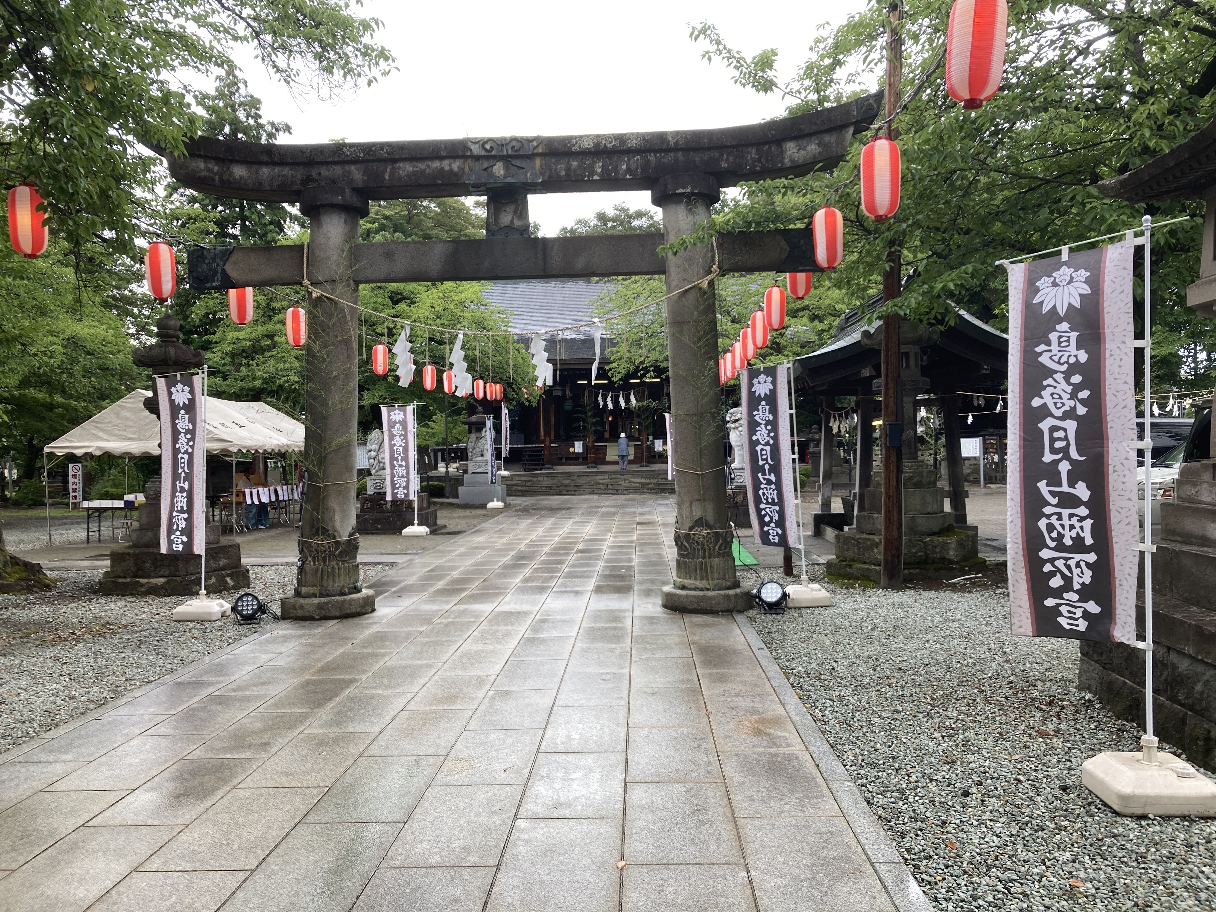 2021年8月2日blogyoko 例祭 お昼を食べ終わると同時に小雨です。 例祭の日なので両所の宮へ。 両側に稲がありました。 露店がでていましたが、雨で子供達も ちらほら程度。 神輿が中止なので、静かな例祭でした。