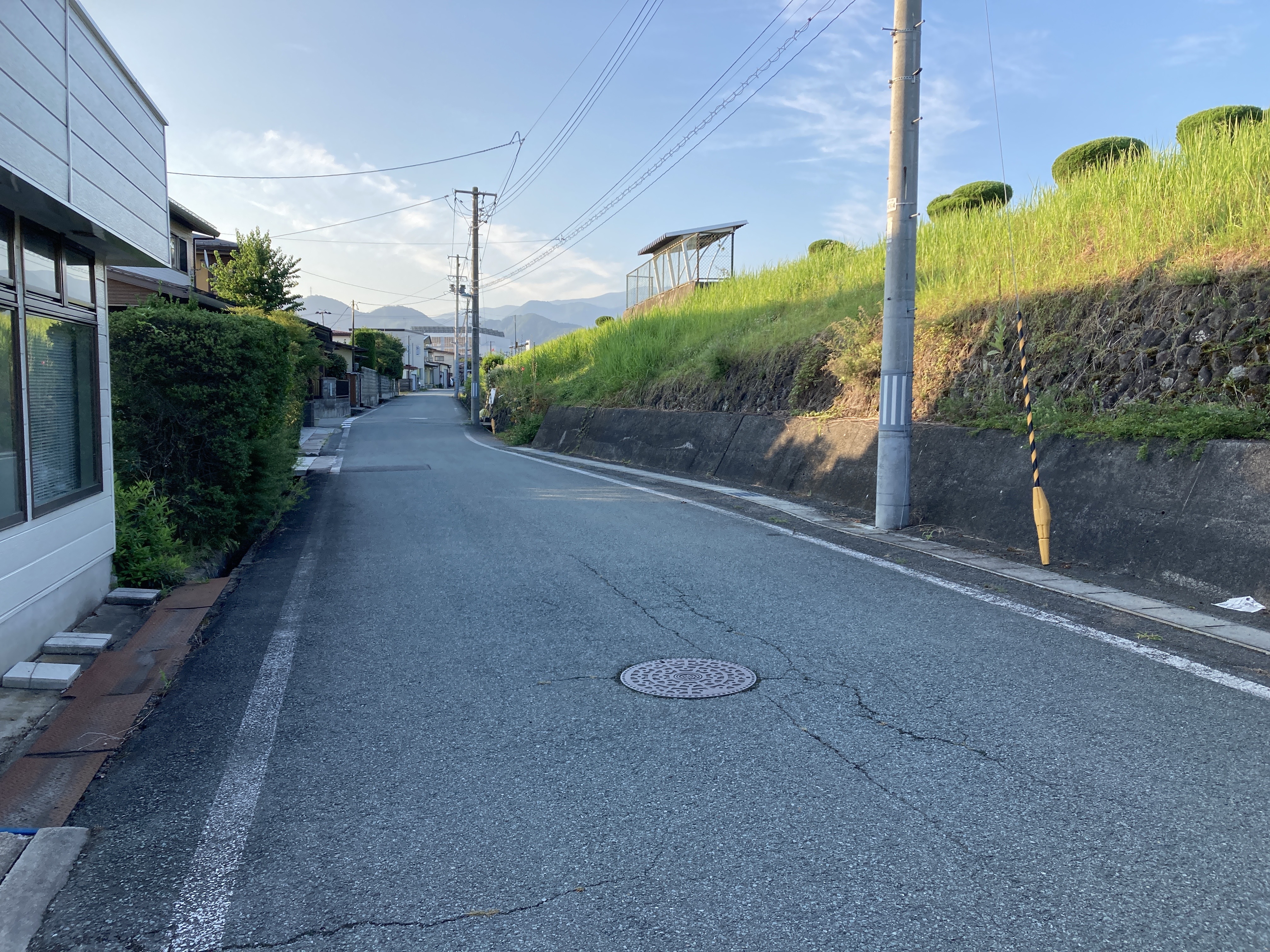 2021年8月2日blogyoko 日陰を探しながら 今日も日陰探しながらの散歩開始です。 どうしても早足の私に相棒から、もう少し ゆっくりの催促です。 電柱に誰かの忘れ物でしょうか? 途中、農家の方達から次々お声がかかり ましたが、今は我が家も野菜がいっぱい お断りしながらの散歩で〜す。