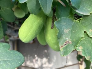 2021年8月3日blogyoko 1時間弱 おはようございます。 朝5時前の空です。 今日はすごく暑くなりそうなので早々に 散歩開始、畑に鍬の忘れ物です。 まだ、本調子でない相棒なので今日もショート。 自宅前の御宅のアケビ観察して1時間弱で〜す。