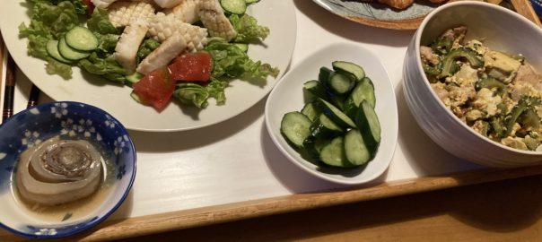 イカをオリーブ油焼いての夕食です。