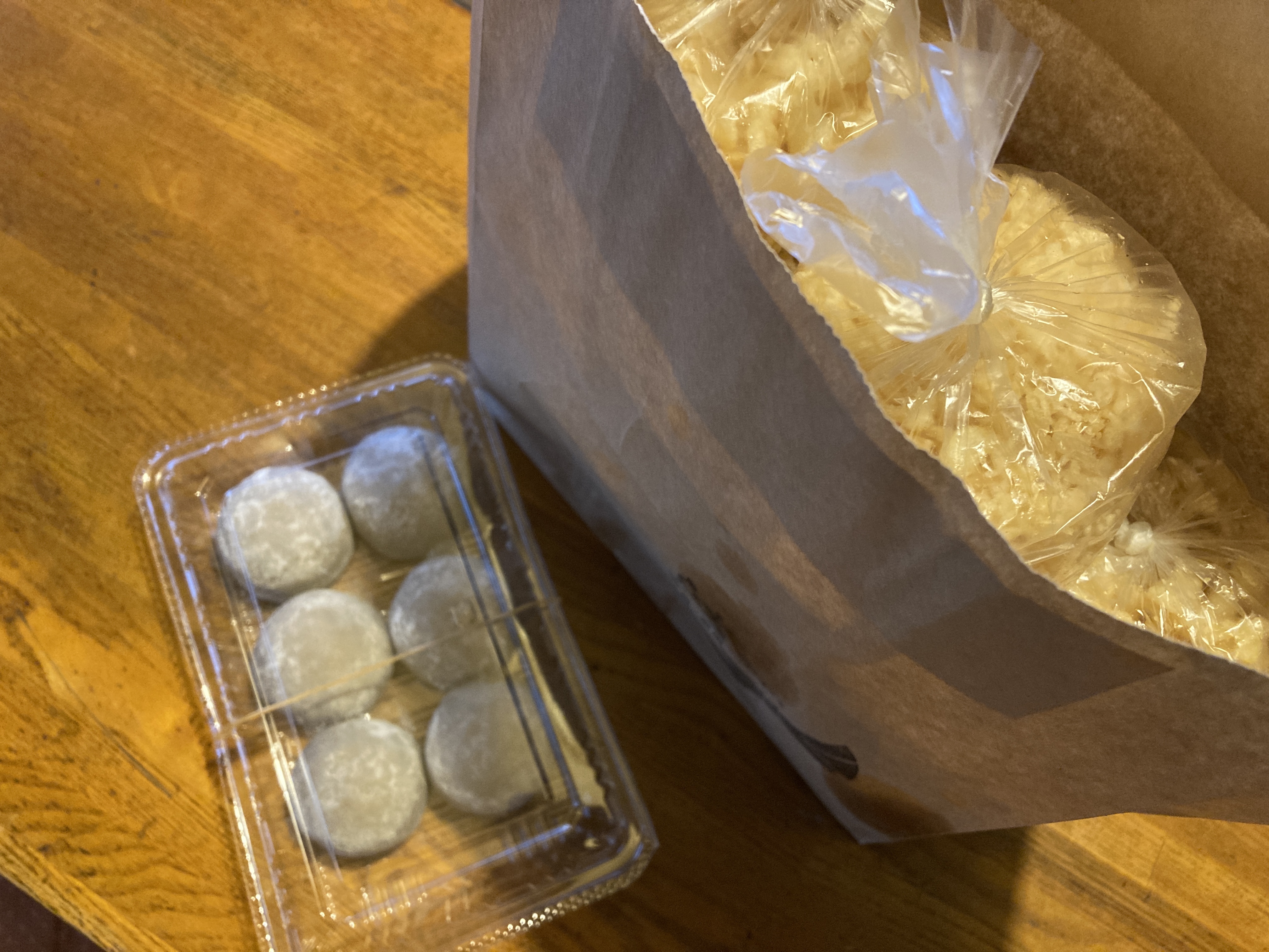 そば屋さんからは蕎麦まんじゅうと天かす。