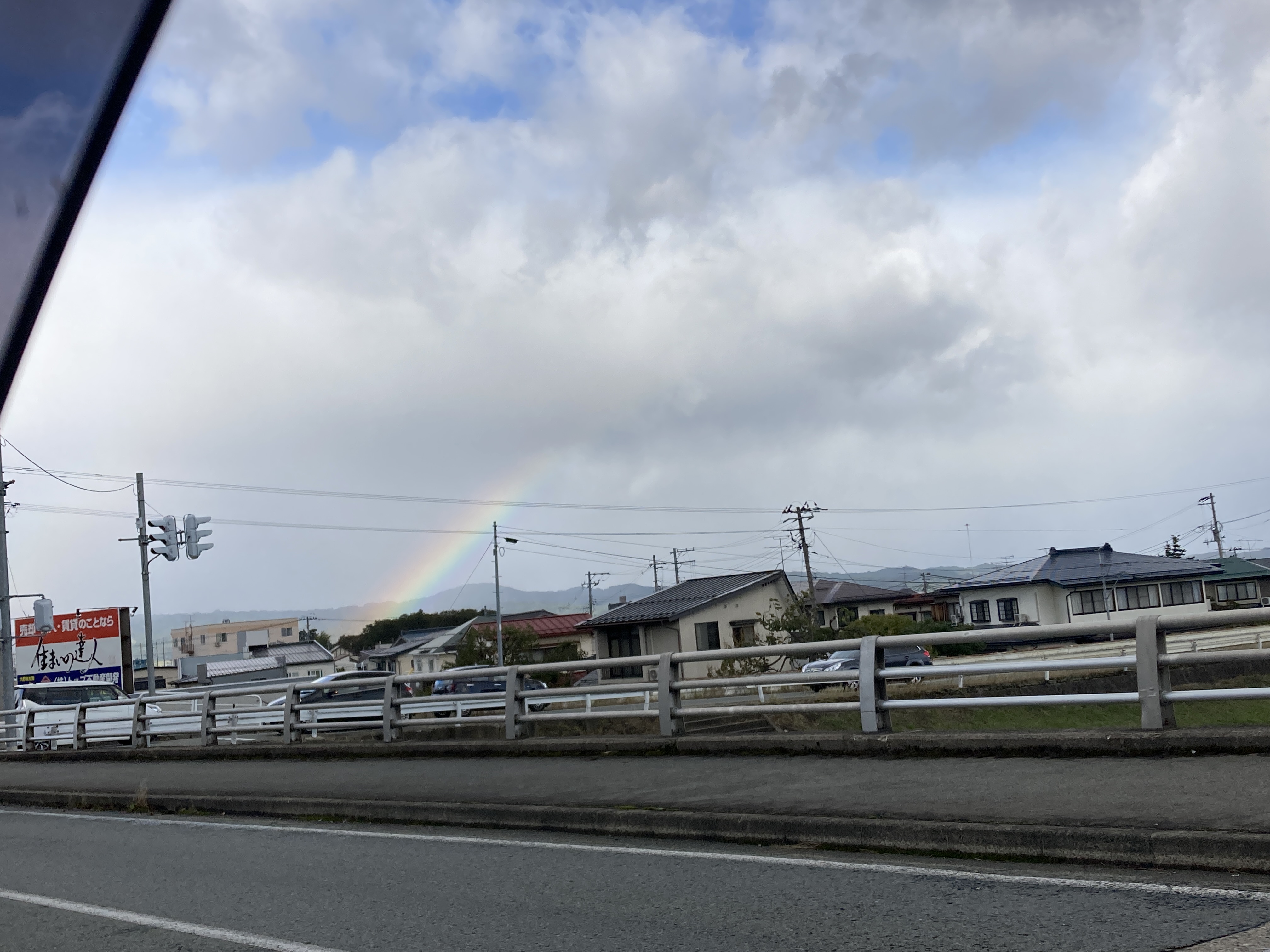 2021年10月20日blogyoko 虹 朝の出社時、二口橋で信号待ち。 微かですが虹が見えました。 事務所に着いたら、再度パチリのつもりが すでに虹は消えていました。 今日は1日雨予報! ずっとスッキリしない天気が続いていま〜す。